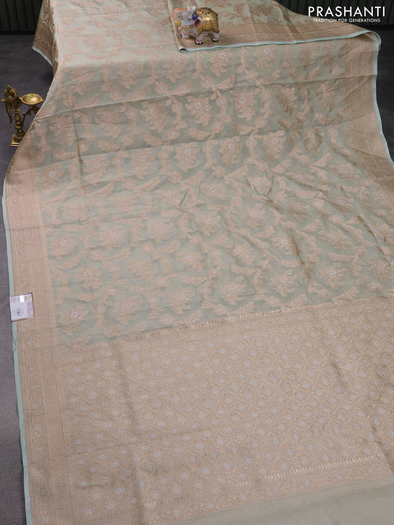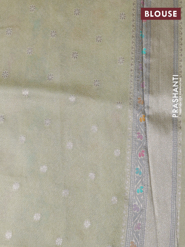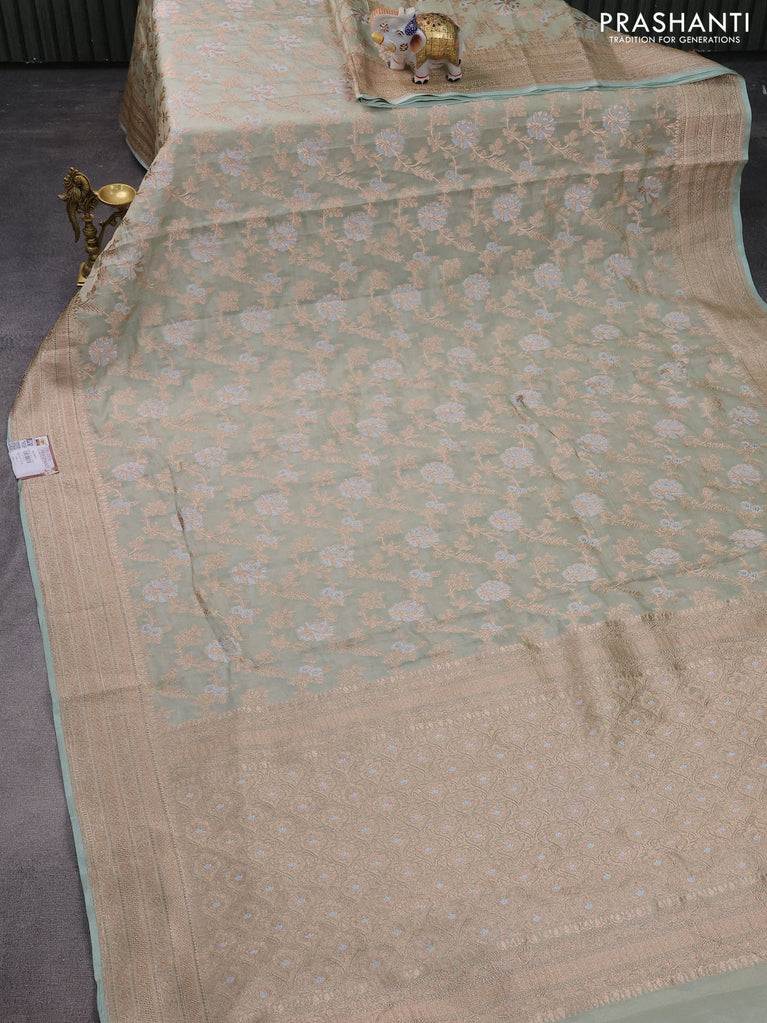 Banarasi tissue silk saree greyish green with allover silver & gold zari weaves and zari woven border