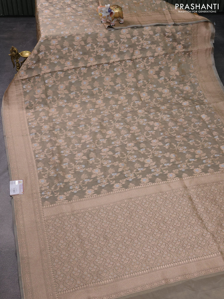 Banarasi tissue silk saree grey shade with allover zari woven brocade weaves and zari woven border
