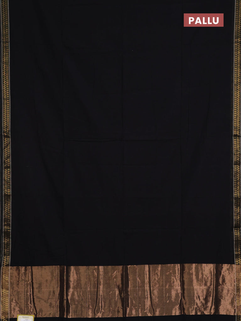 Bengal soft cotton saree black and yellow with plain body and zari woven border