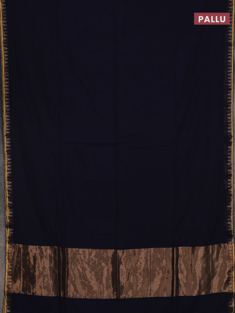 Bengal soft cotton saree blue and bluish grey with plain body and zari woven border