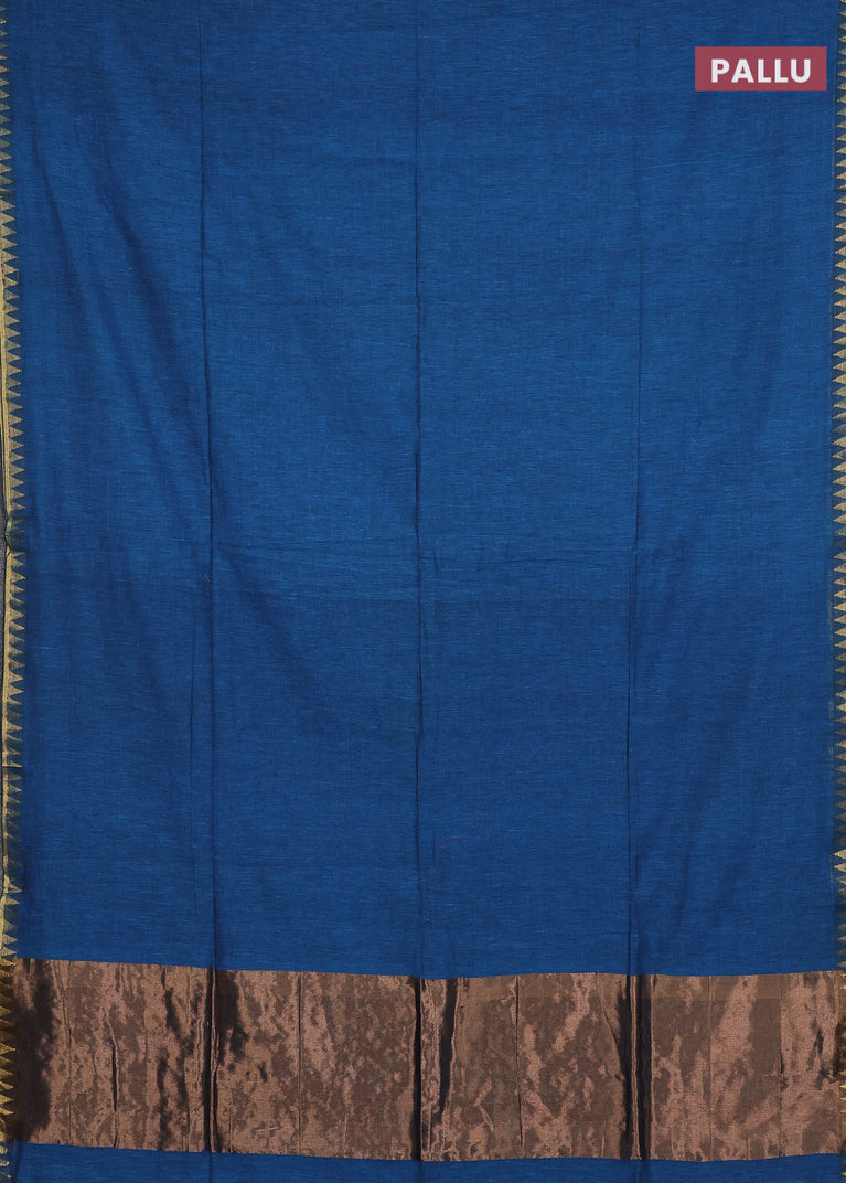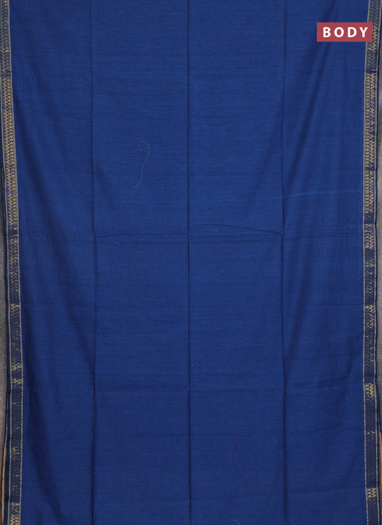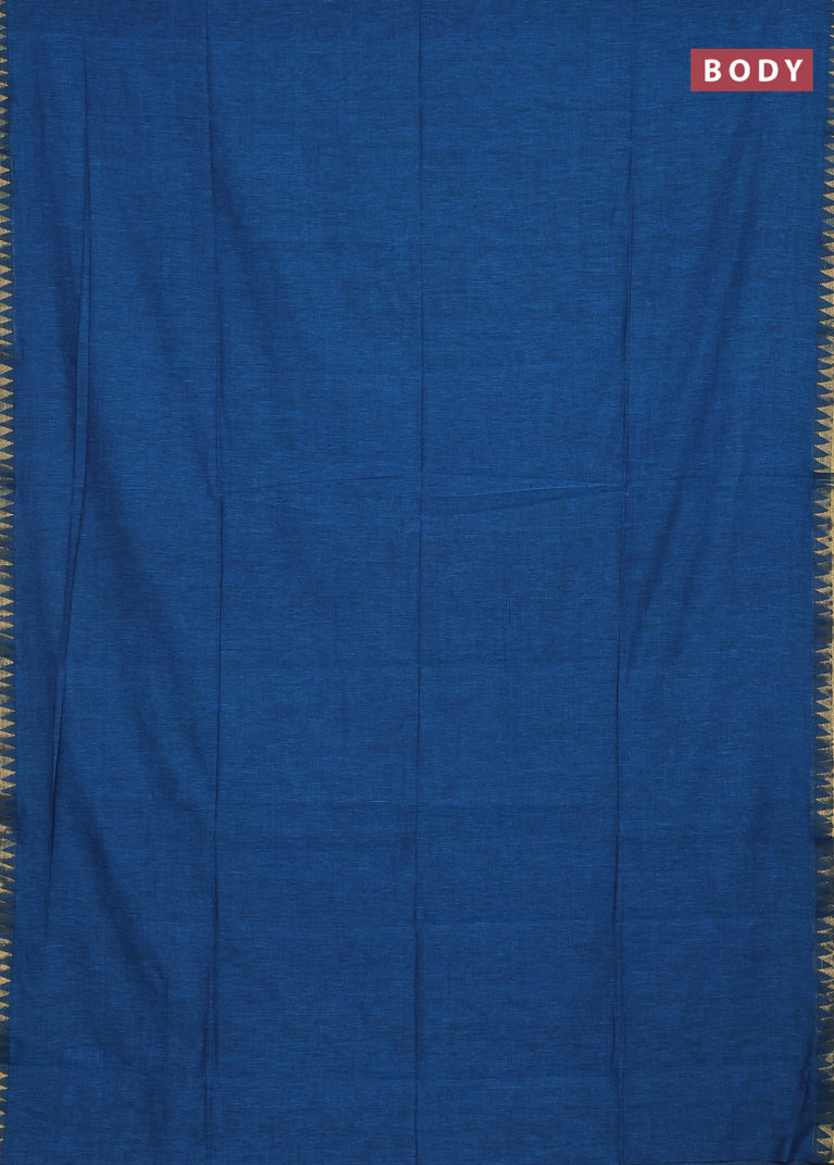 Bengal soft cotton saree cs blue and blue with plain body and zari woven border