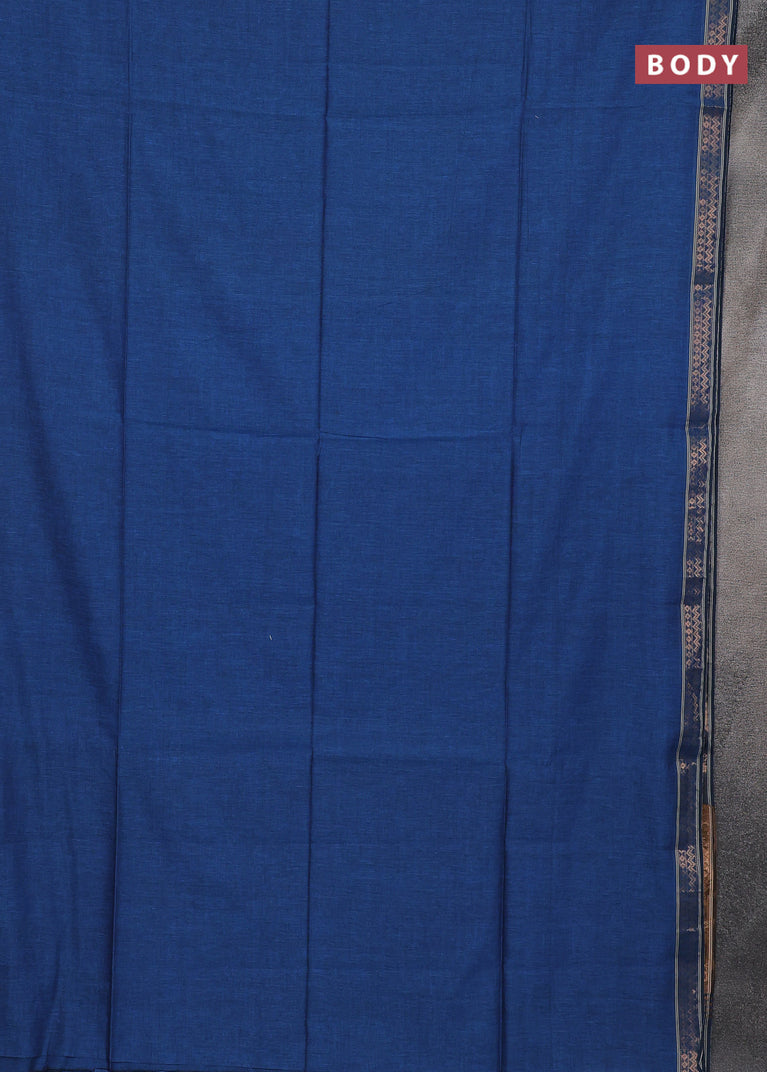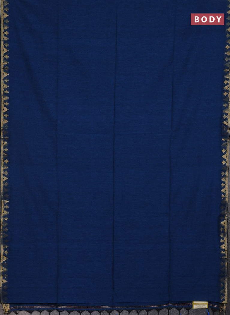 Bengal soft cotton saree cs blue with plain body and temple design zari woven border