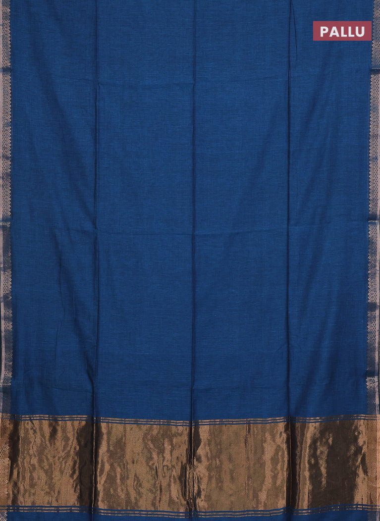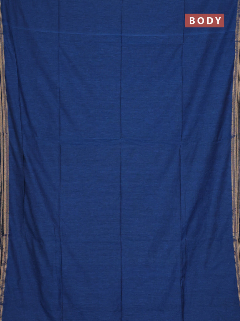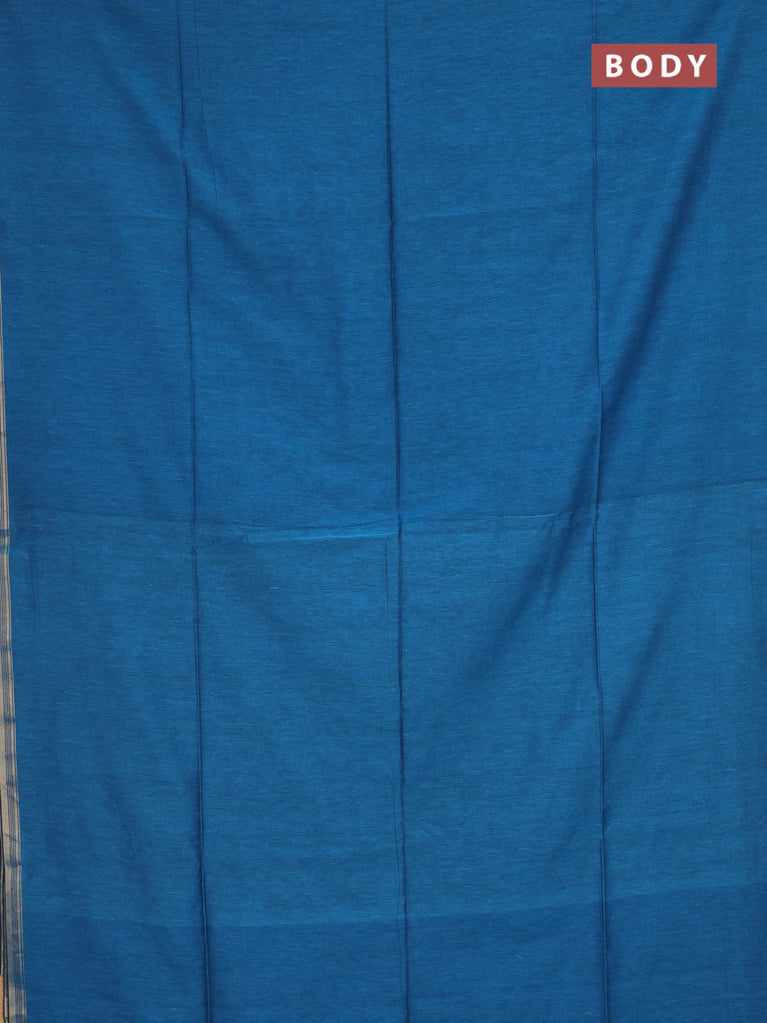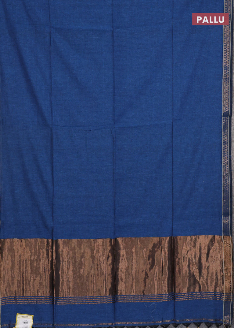 Bengal soft cotton saree cs blue with plain body and zari woven piping border