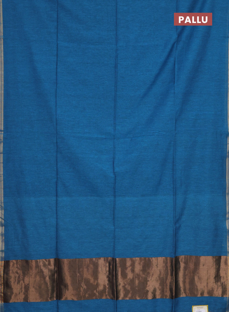 Bengal soft cotton saree cs blue and maroon with plain body and zari woven border