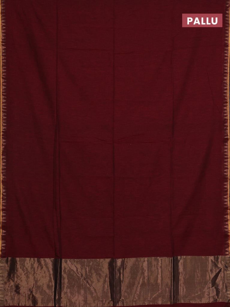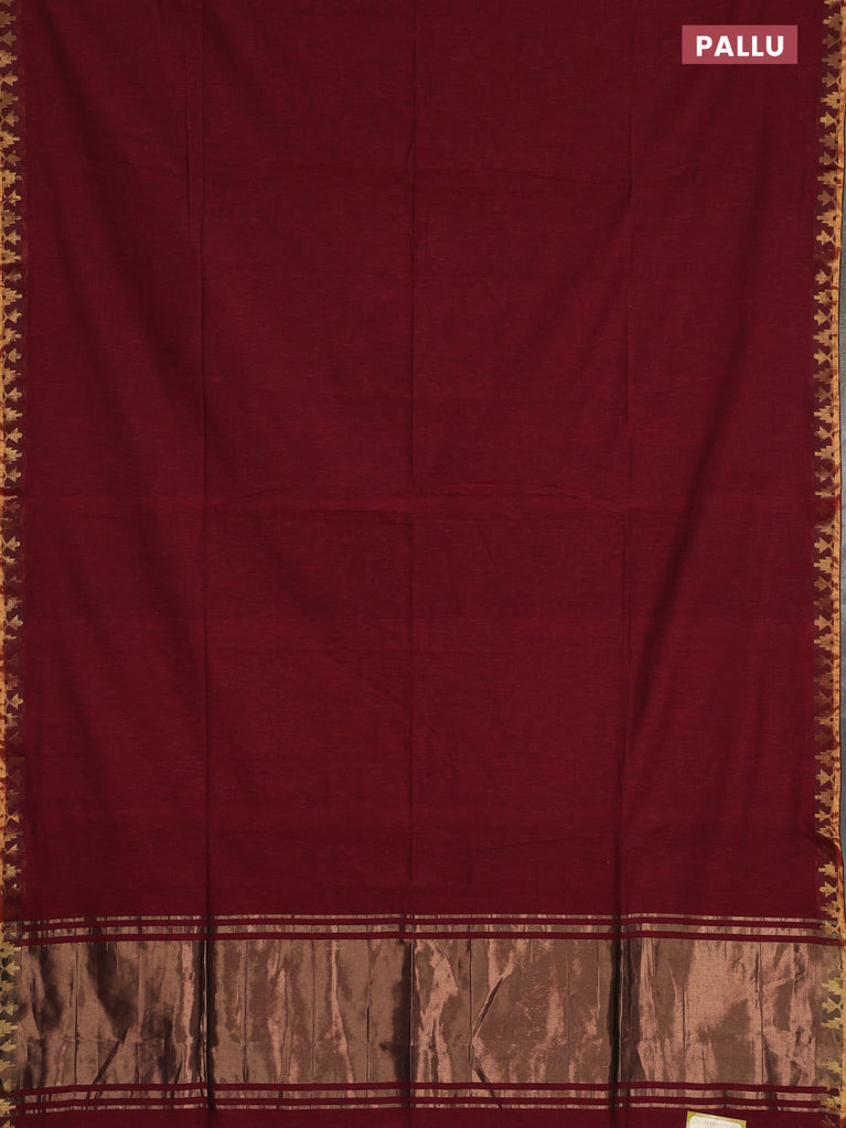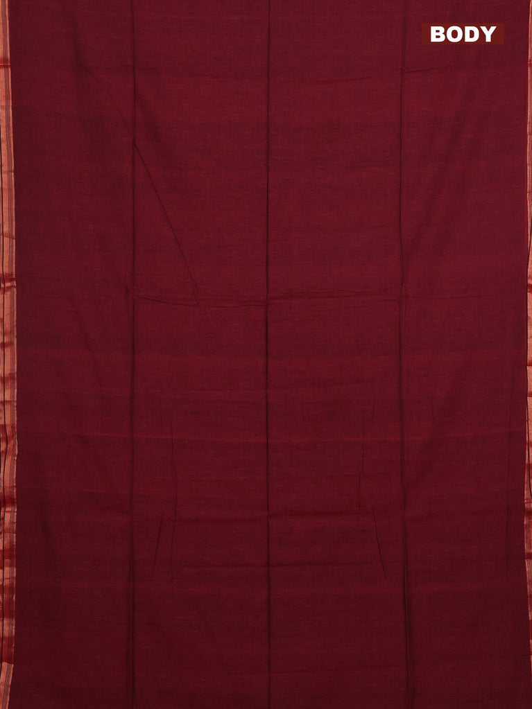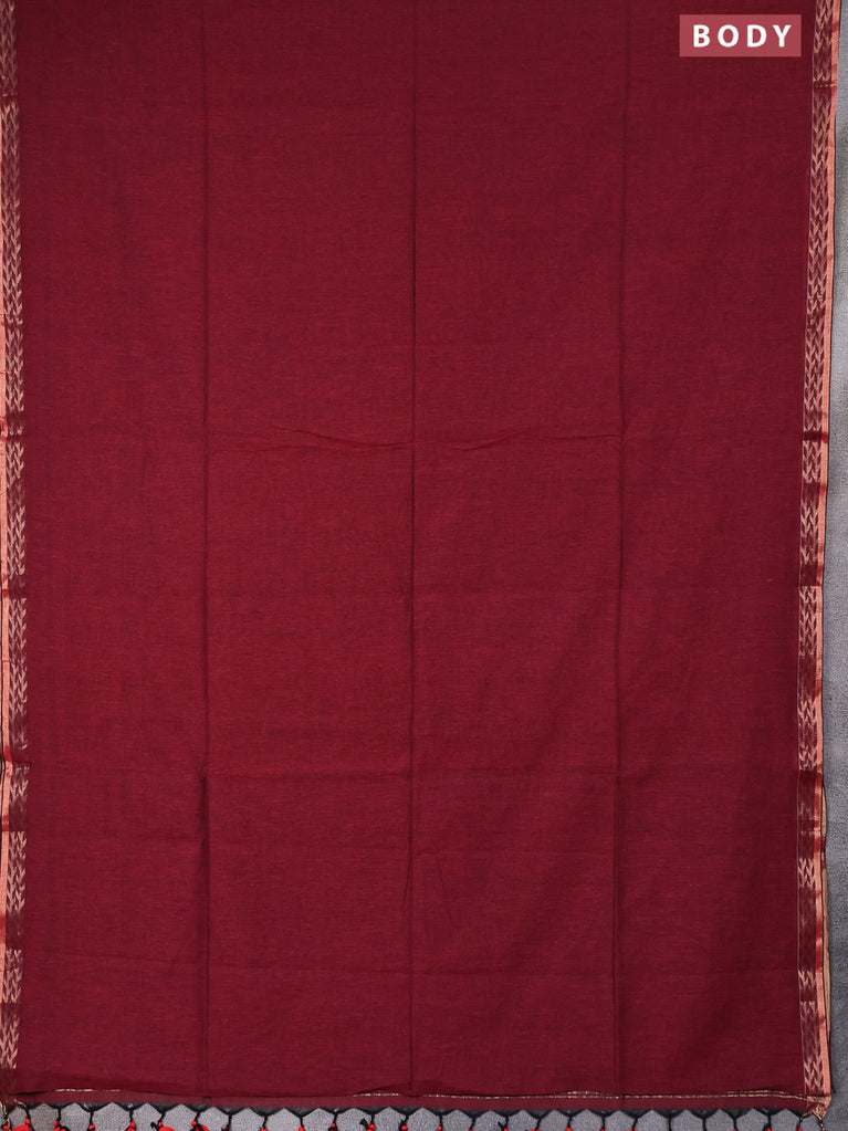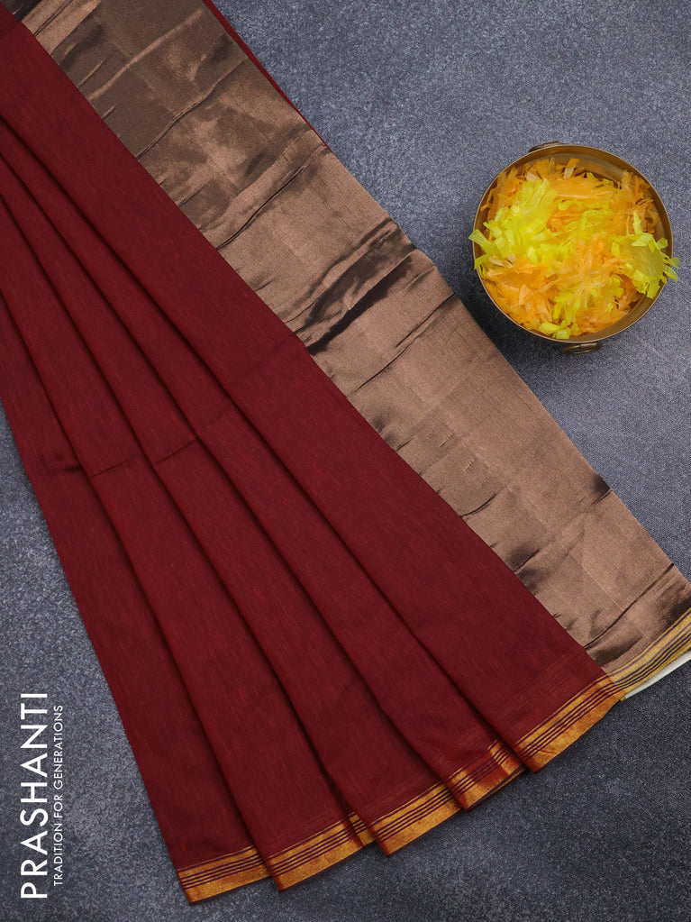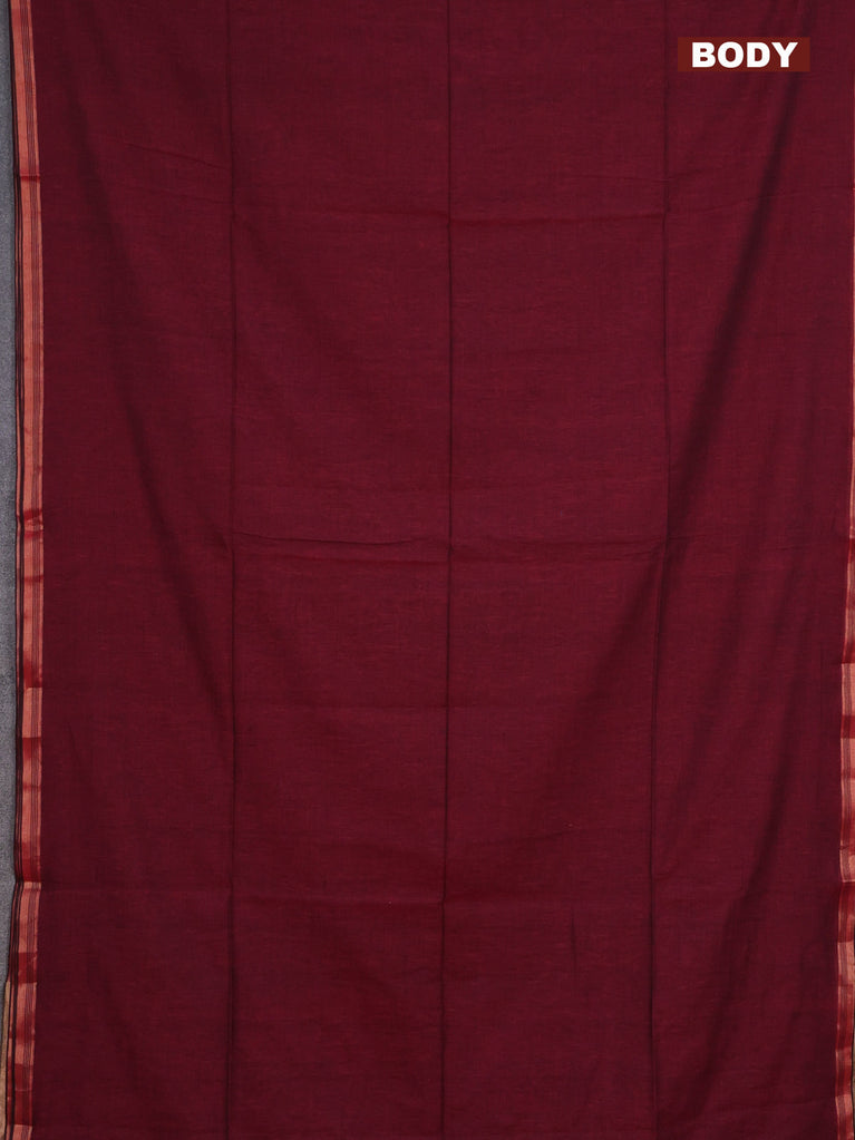 Bengal soft cotton saree maroon with plain body and zari woven piping border
