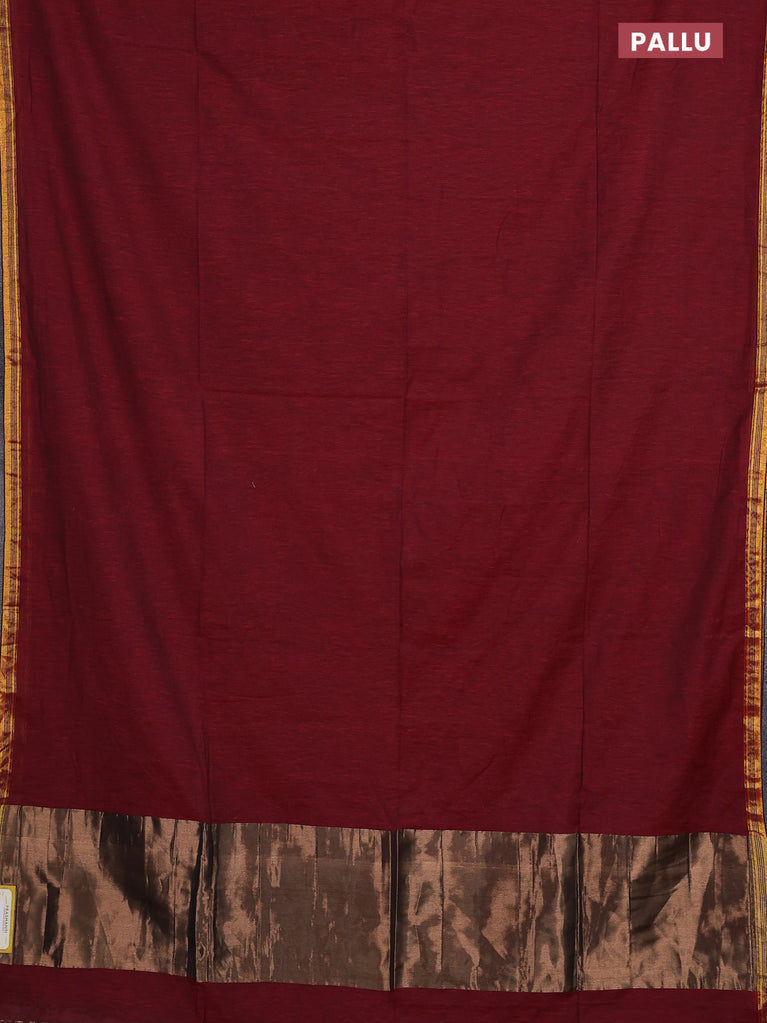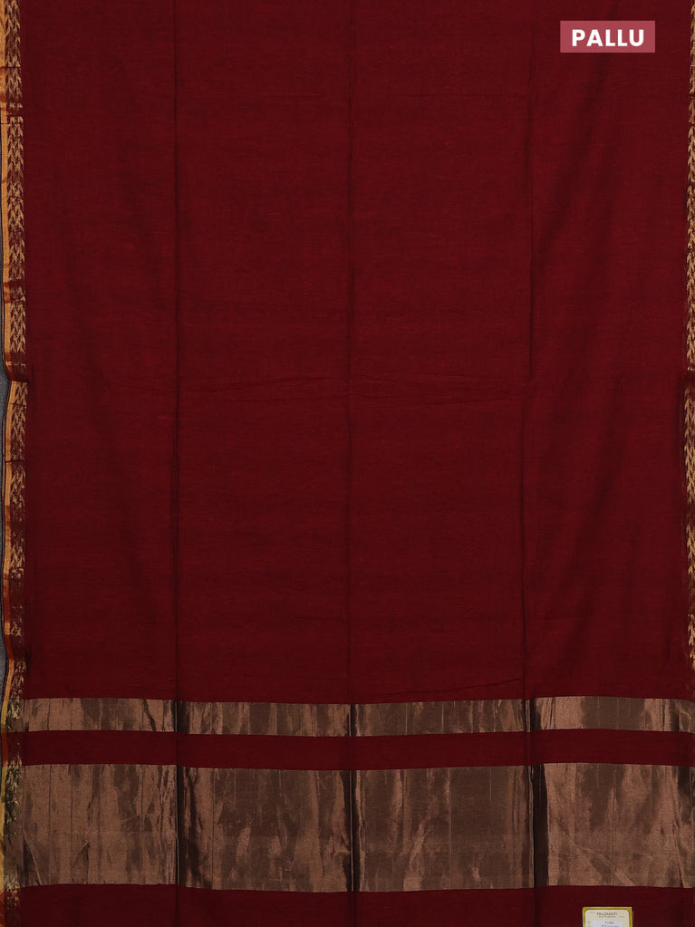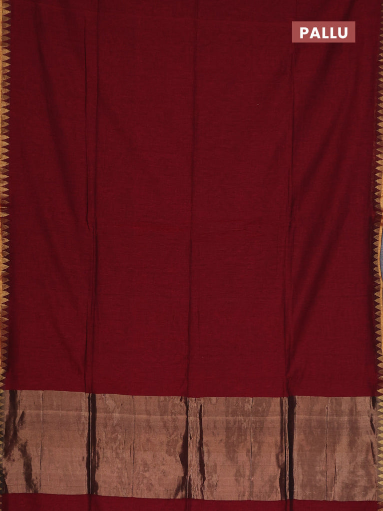 Bengal soft cotton saree maroon and blue with plain body and zari woven border