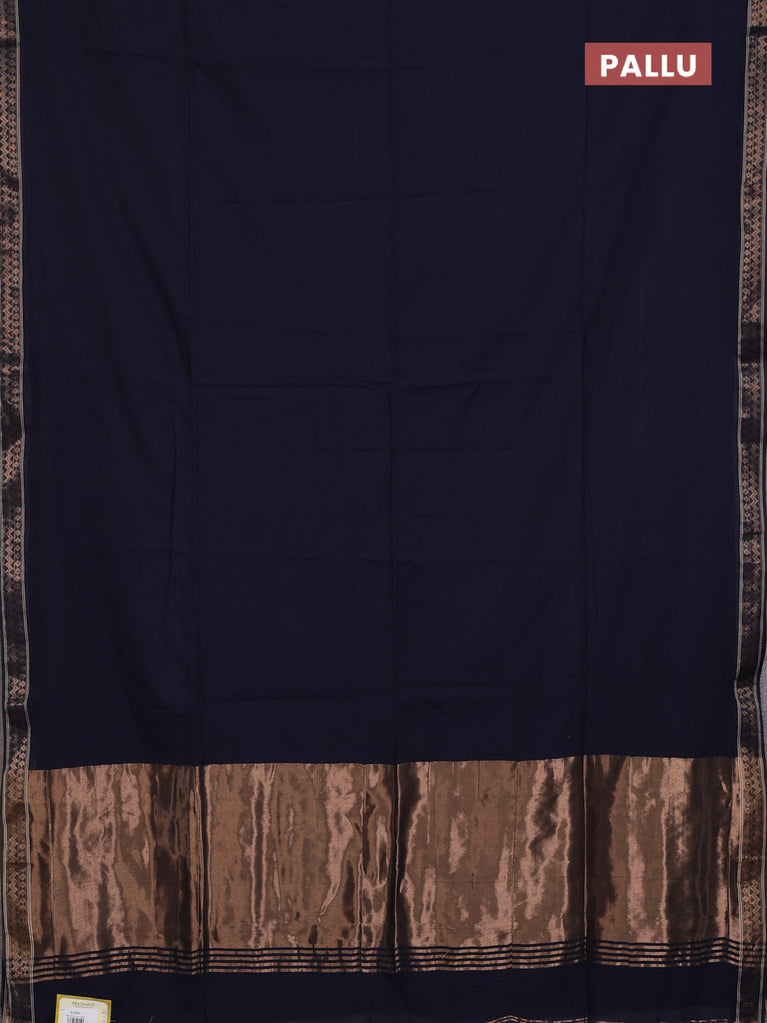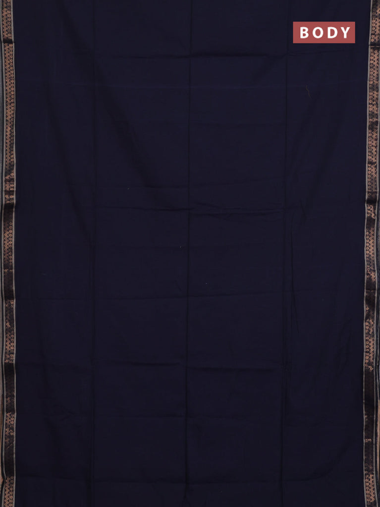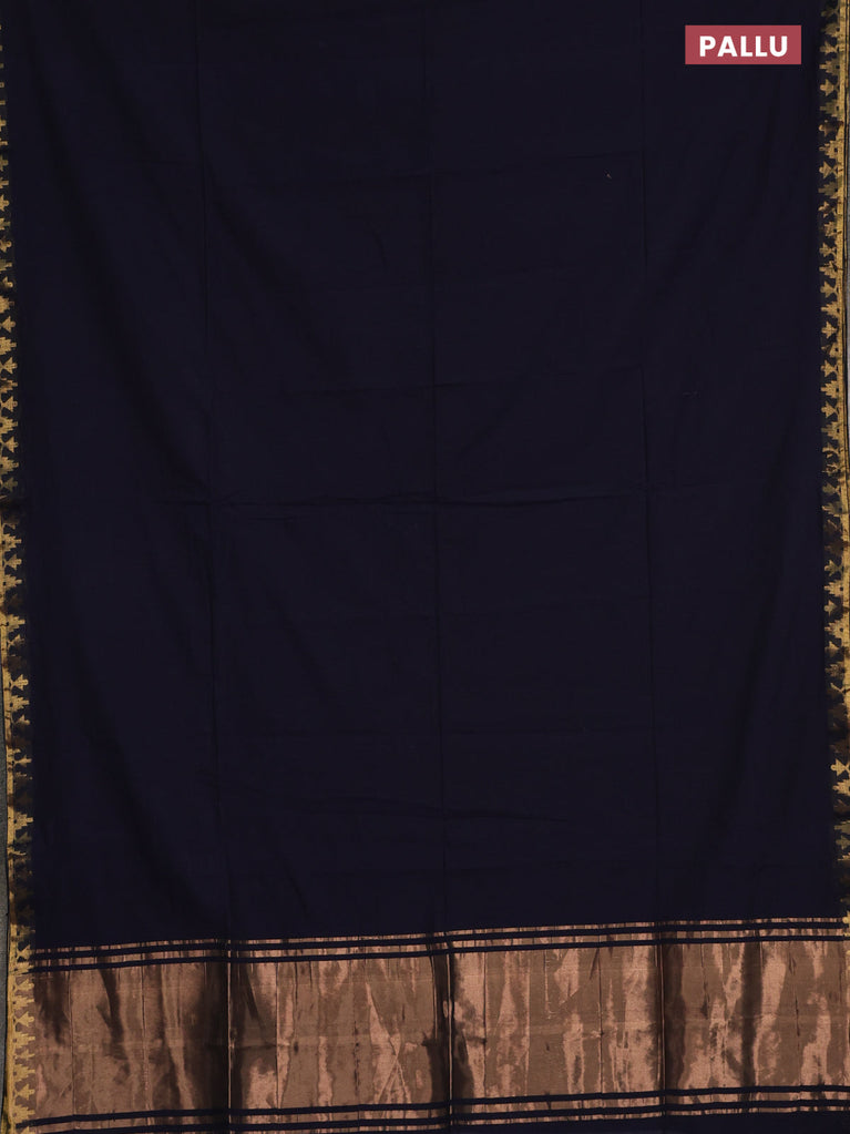 Bengal soft cotton saree navy blue and dark mustard with plain body and zari woven border