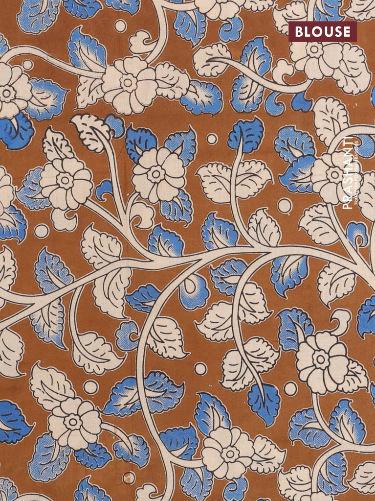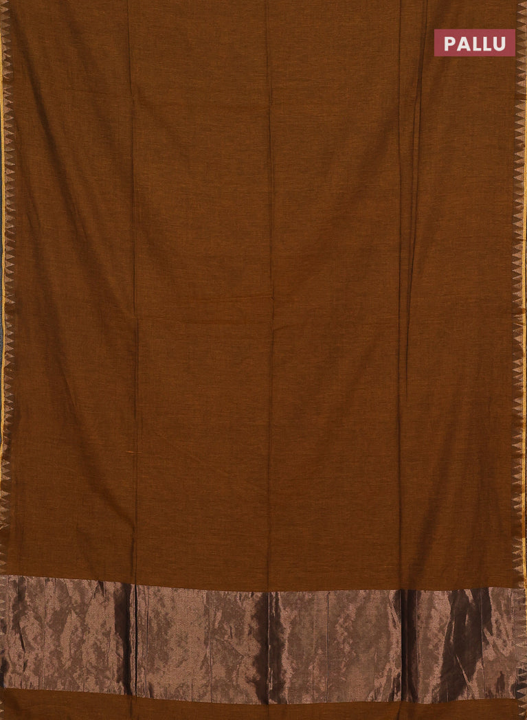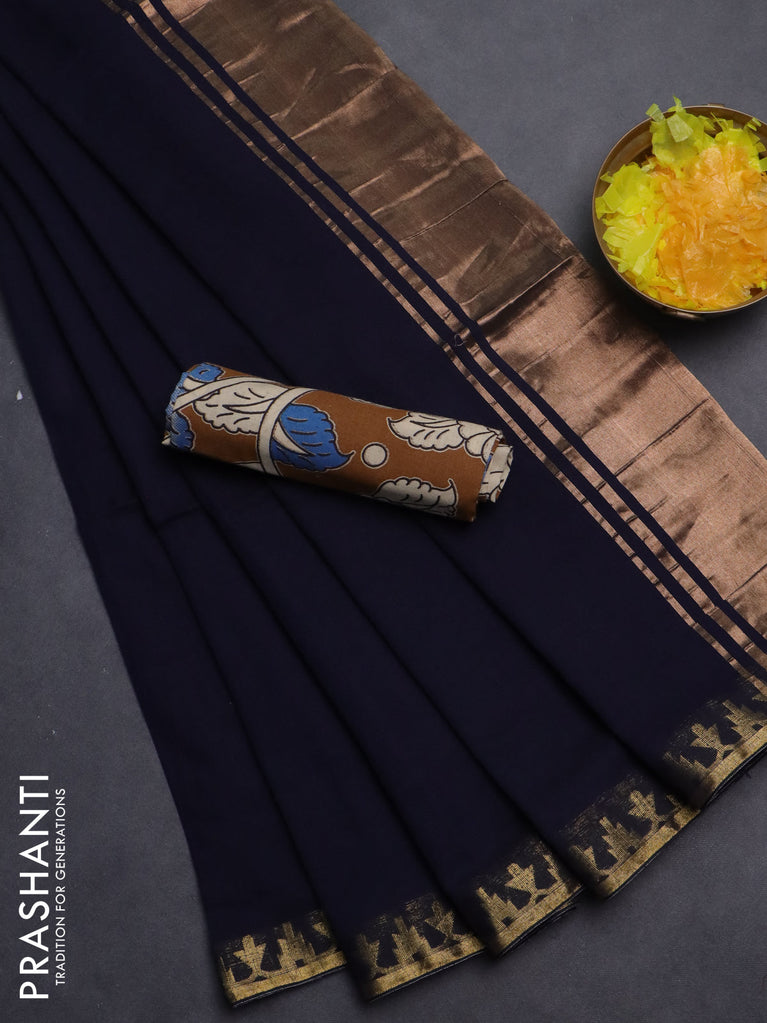Bengal soft cotton saree navy blue and brown with plain body and zari woven border