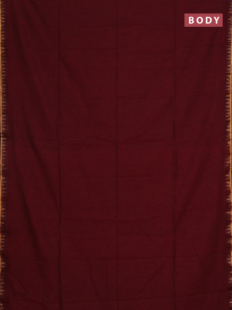 Bengal soft cotton saree maroon and mustard yellow with plain body and zari woven border