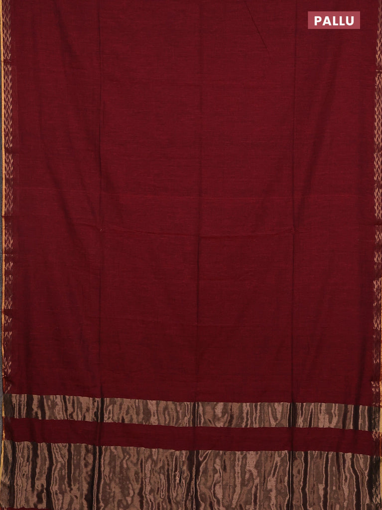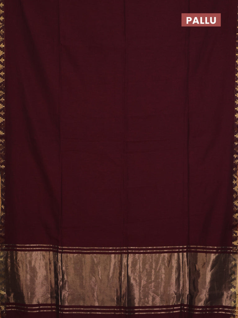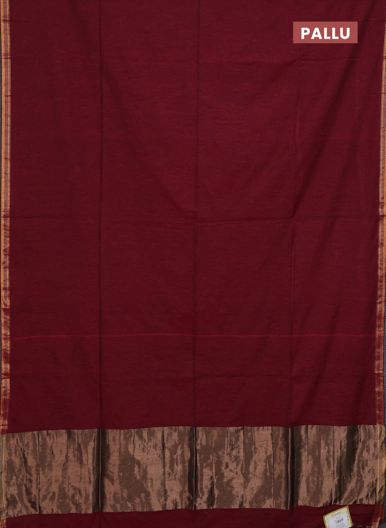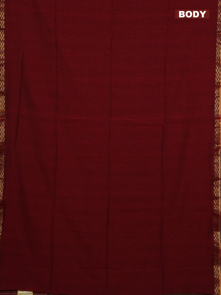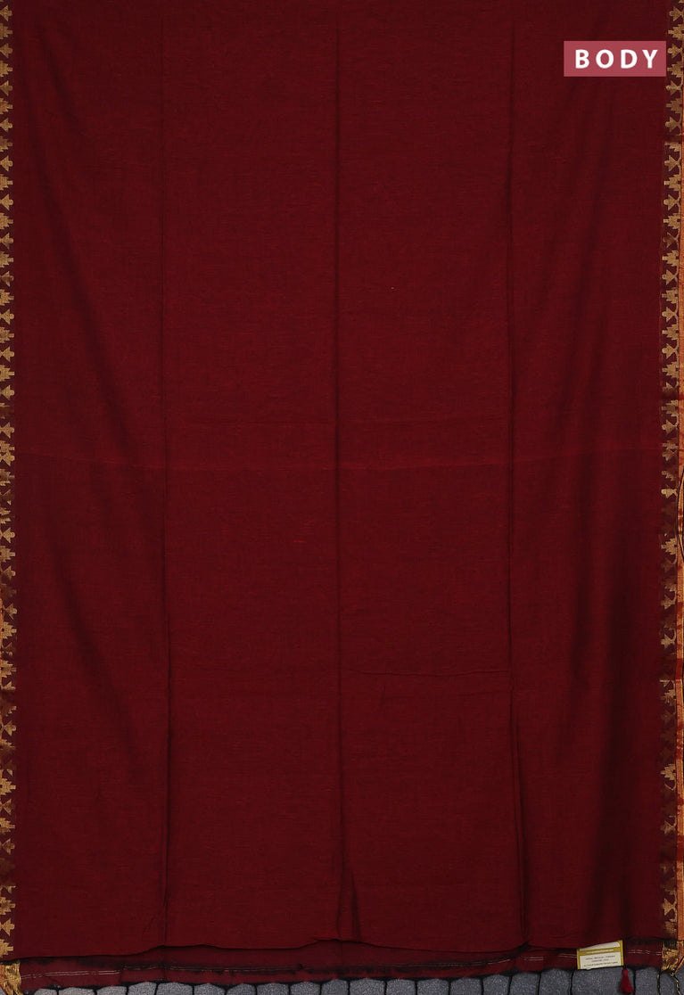 Bengal soft cotton saree maroon with plain body and zari woven border