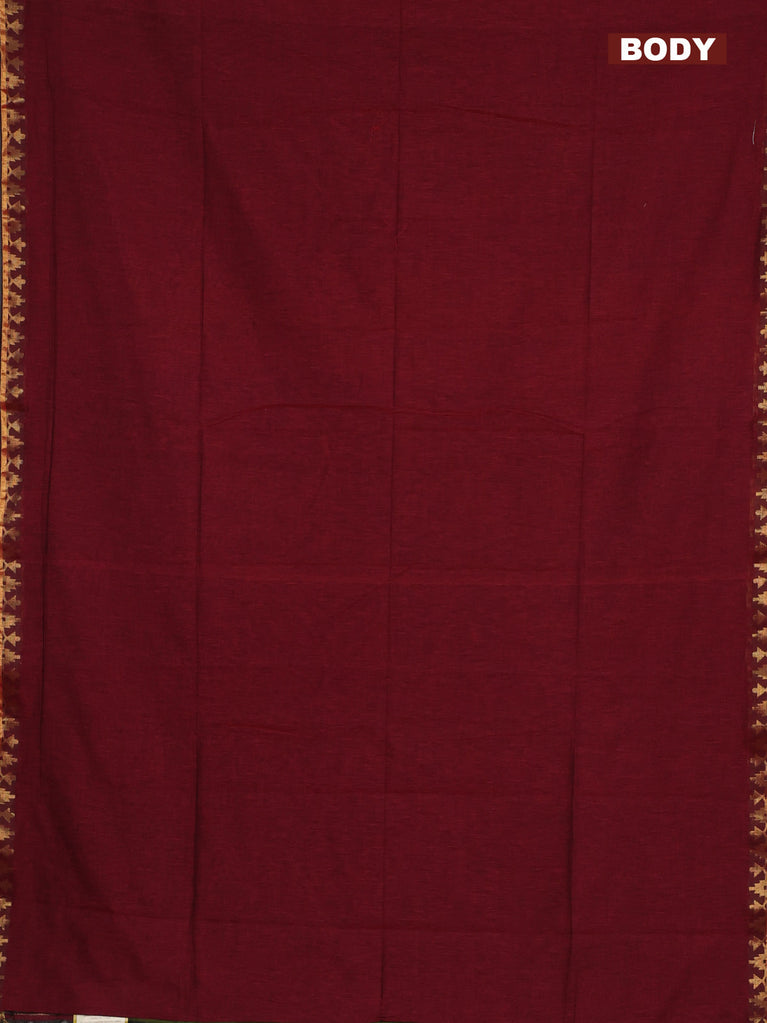 Bengal soft cotton saree maroon and green with plain body and zari woven border