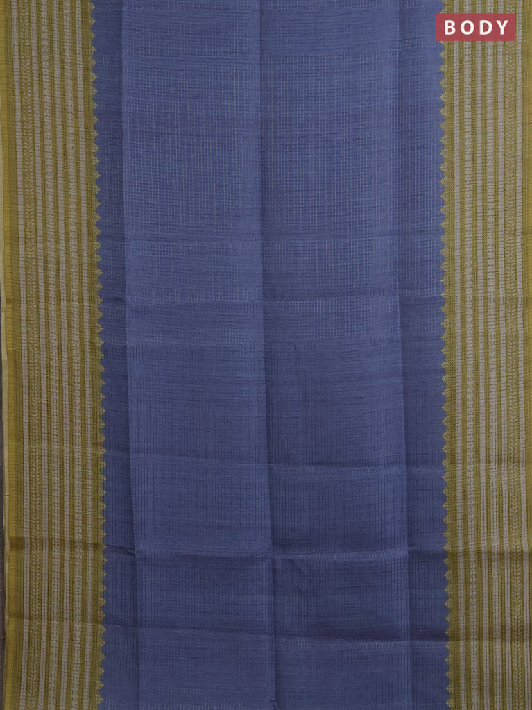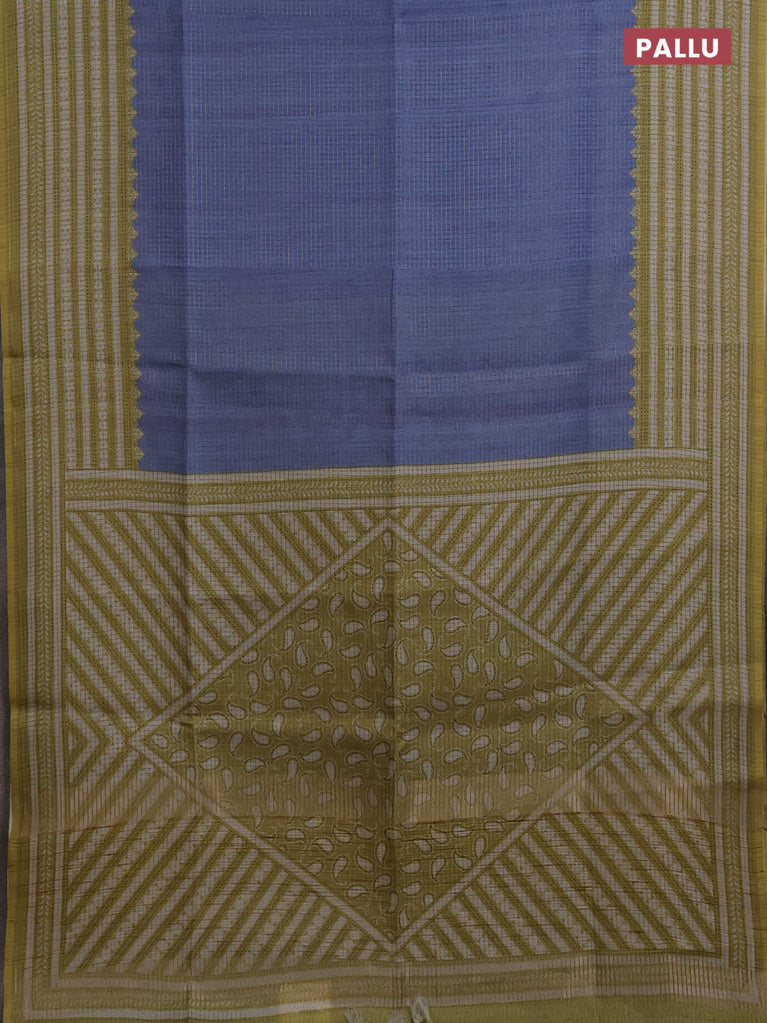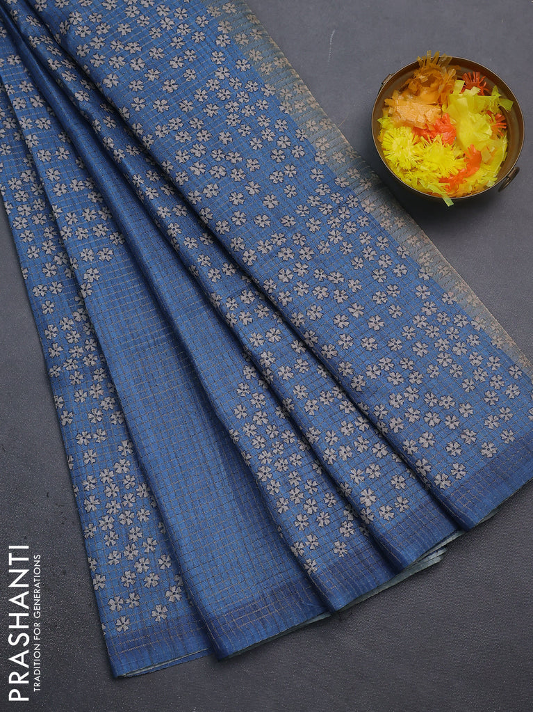 Chappa saree blue and grey with allover small zari checked pattern and printed border