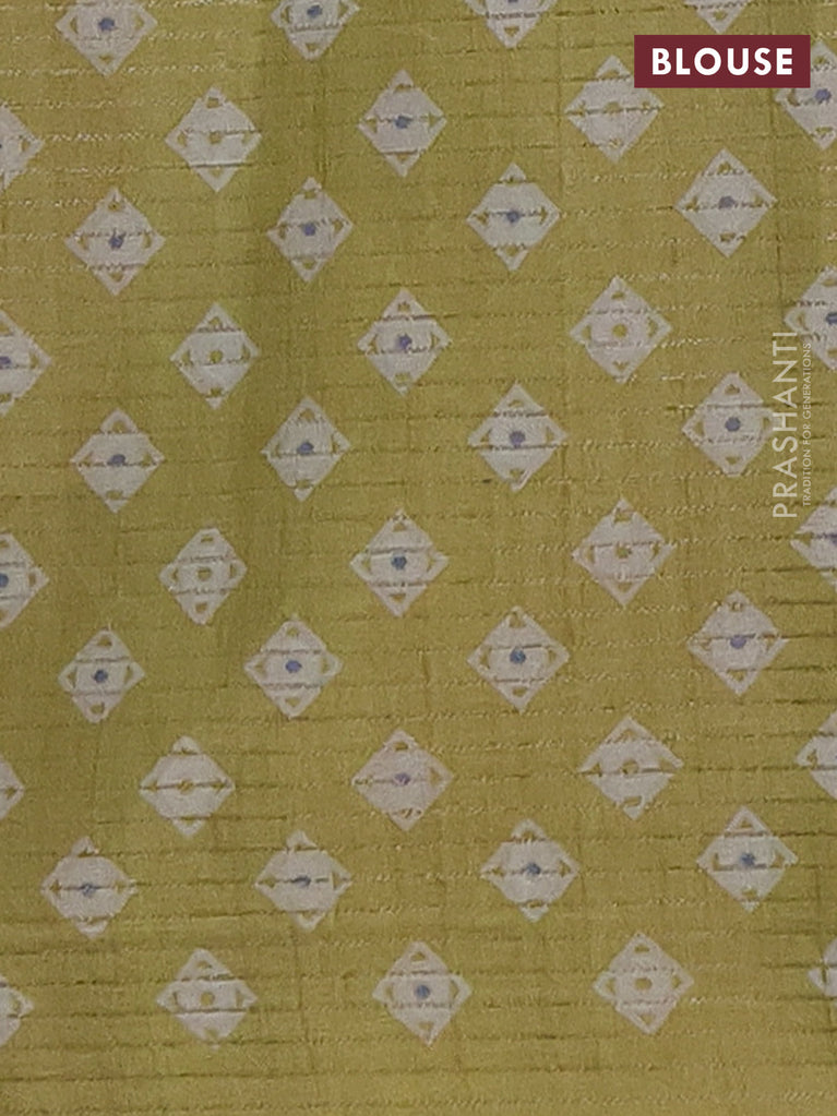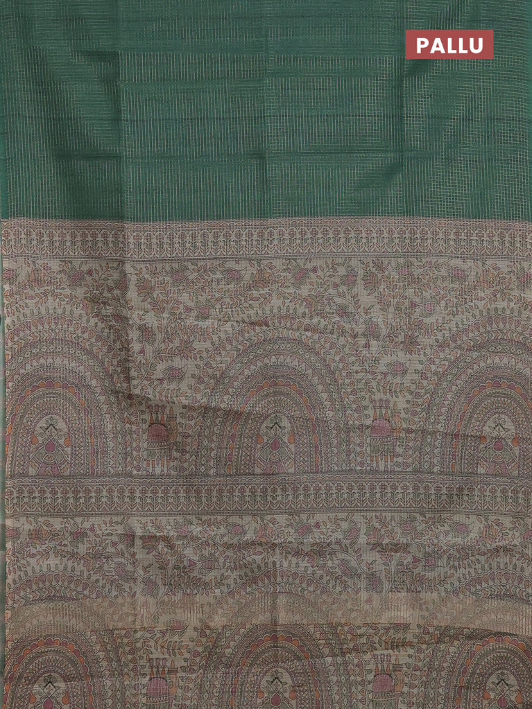 Chappa saree green and beige with allover small zari checked pattern and madhubani printed pallu
