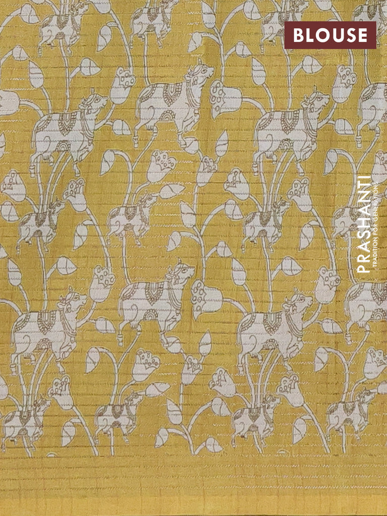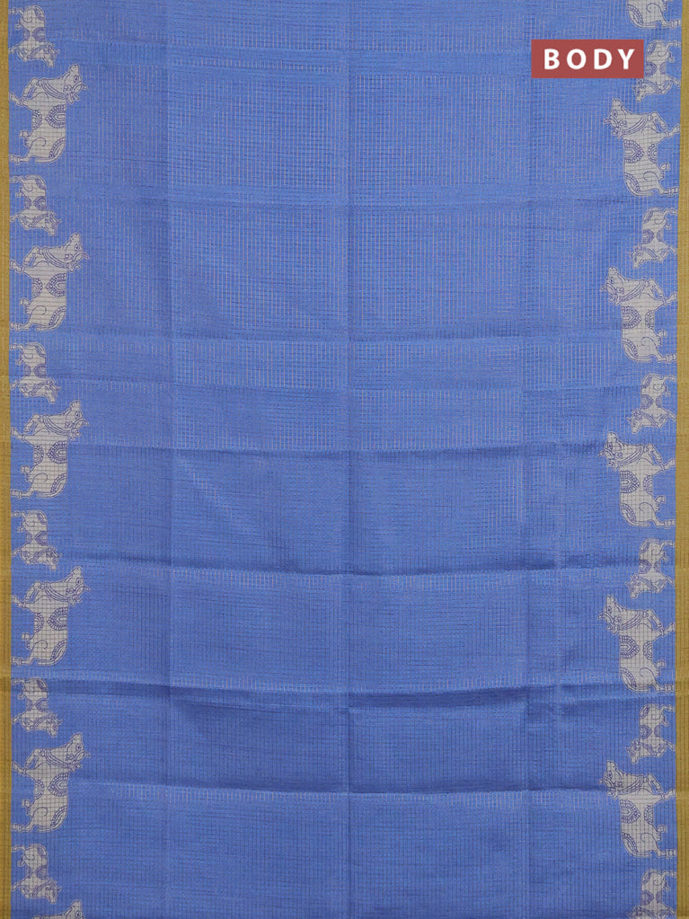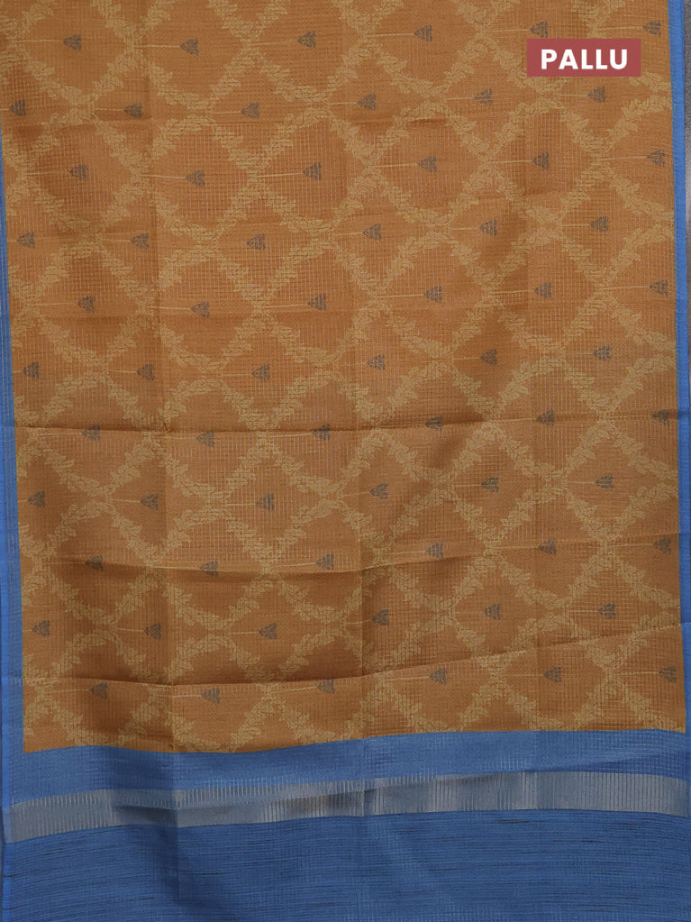 Chappa saree dark mustard and blue with allover small zari checked pattern & prints and piping border