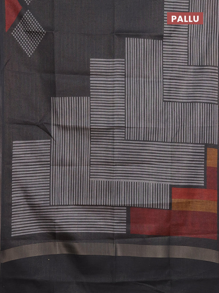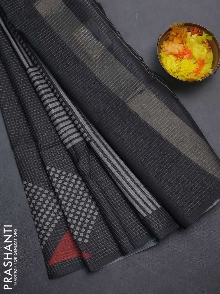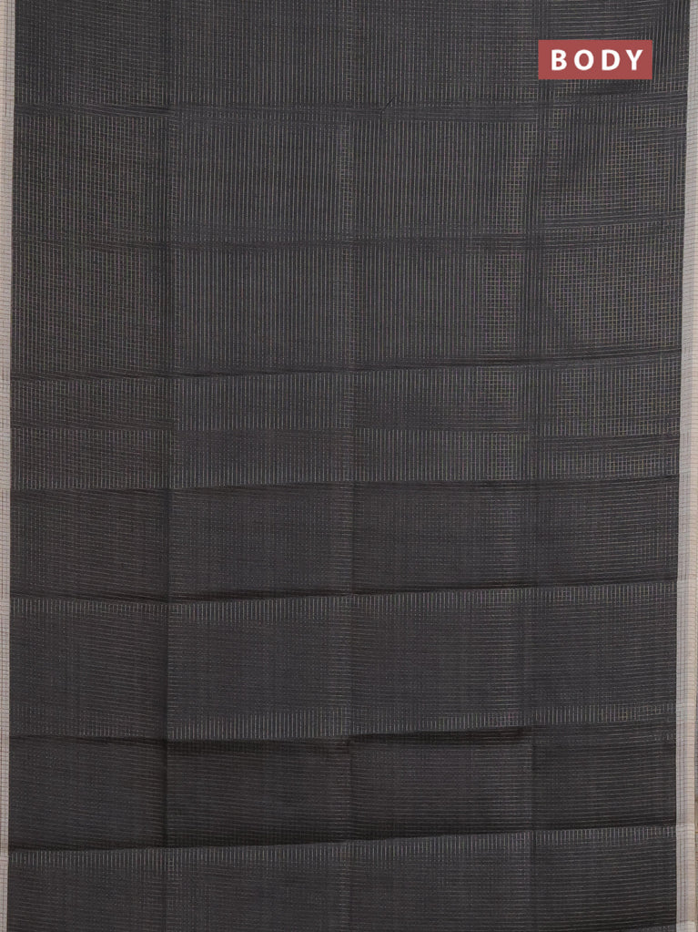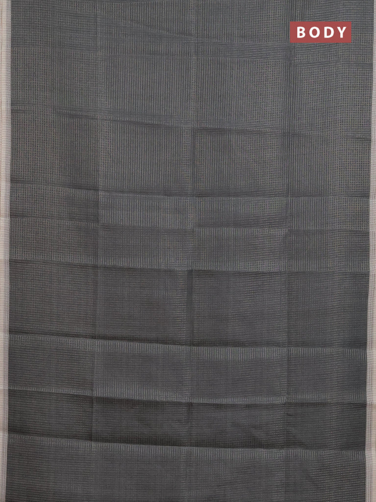 Chappa saree elephant grey and grey with allover small zari checked pattern and printed border
