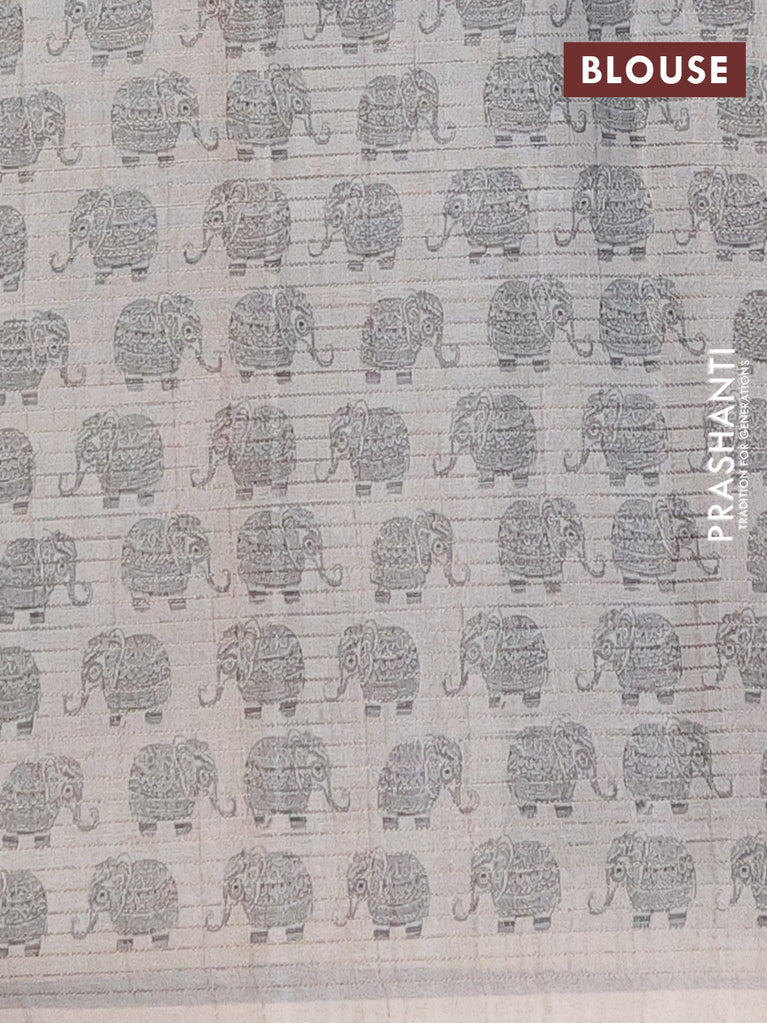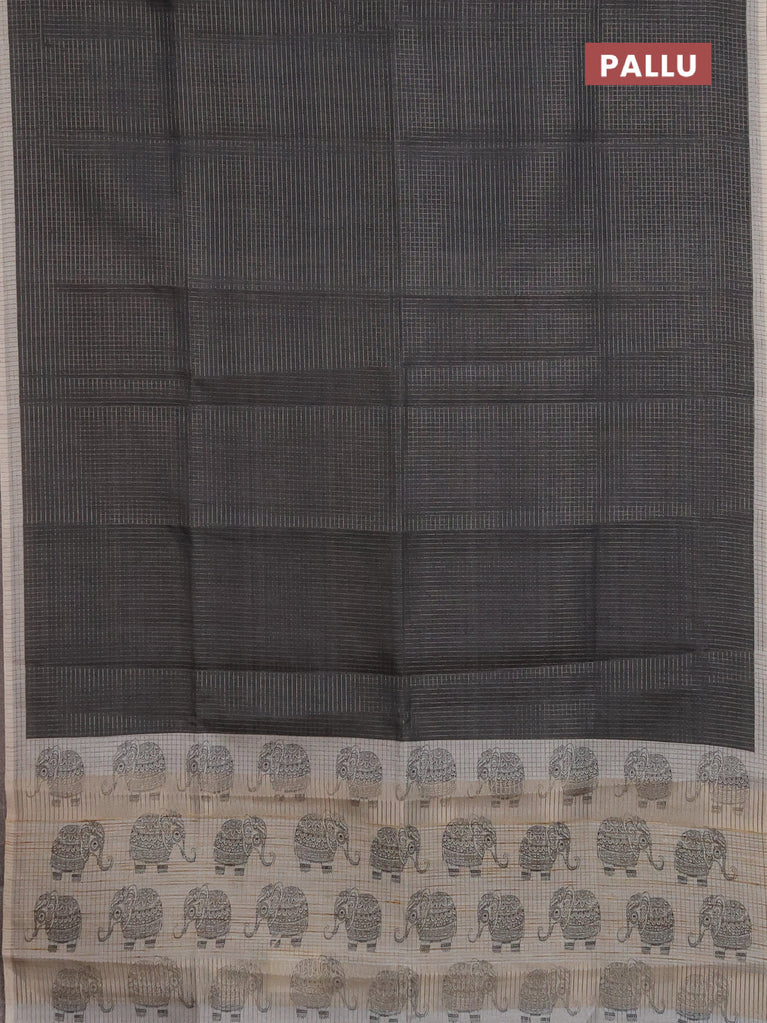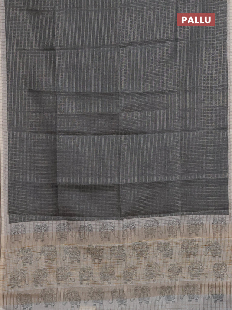 Chappa saree elephant grey and grey with allover small zari checked pattern and elephant butta prints
