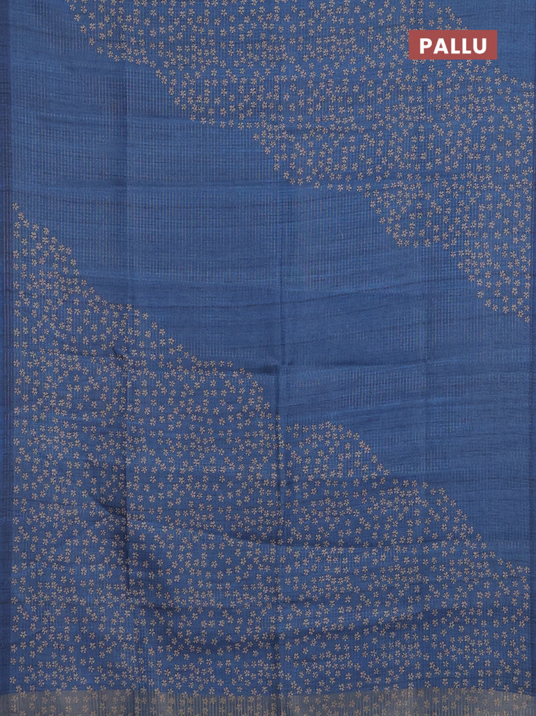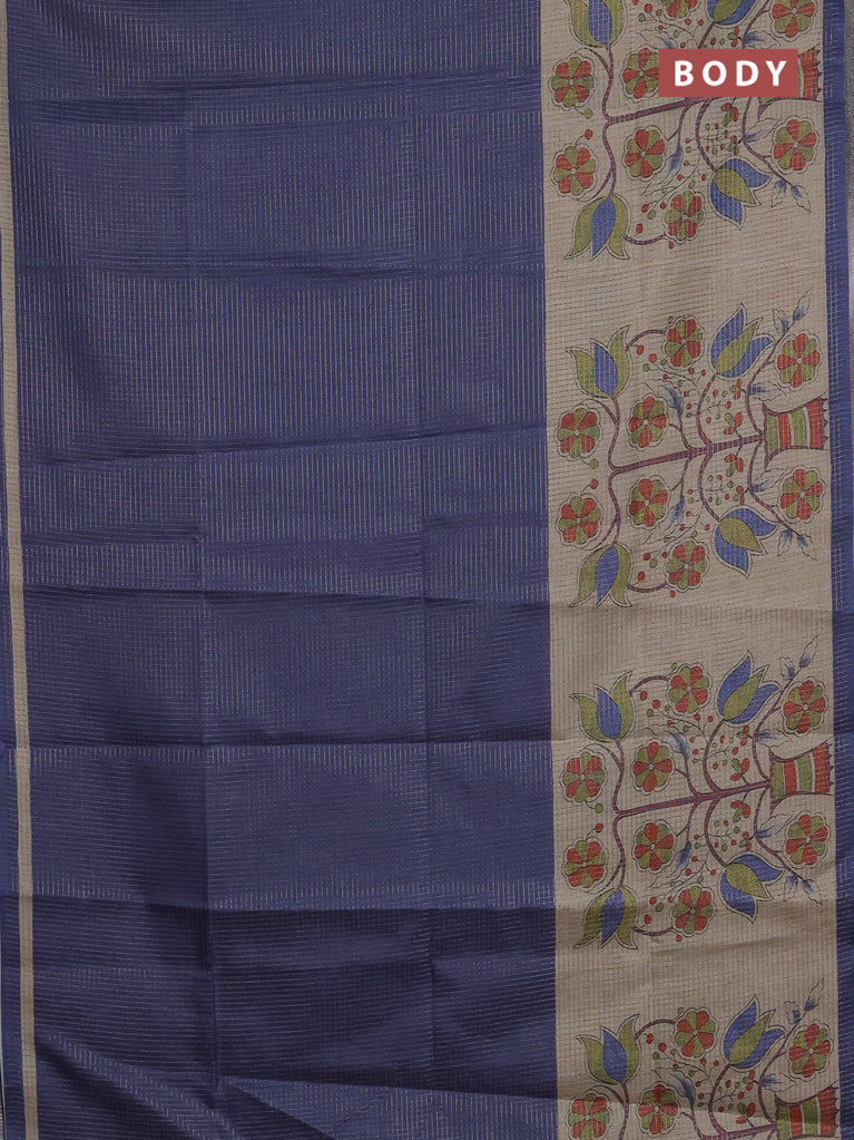 Chappa saree dark blue and beige with allover small zari checked pattern and floral digital printed pallu