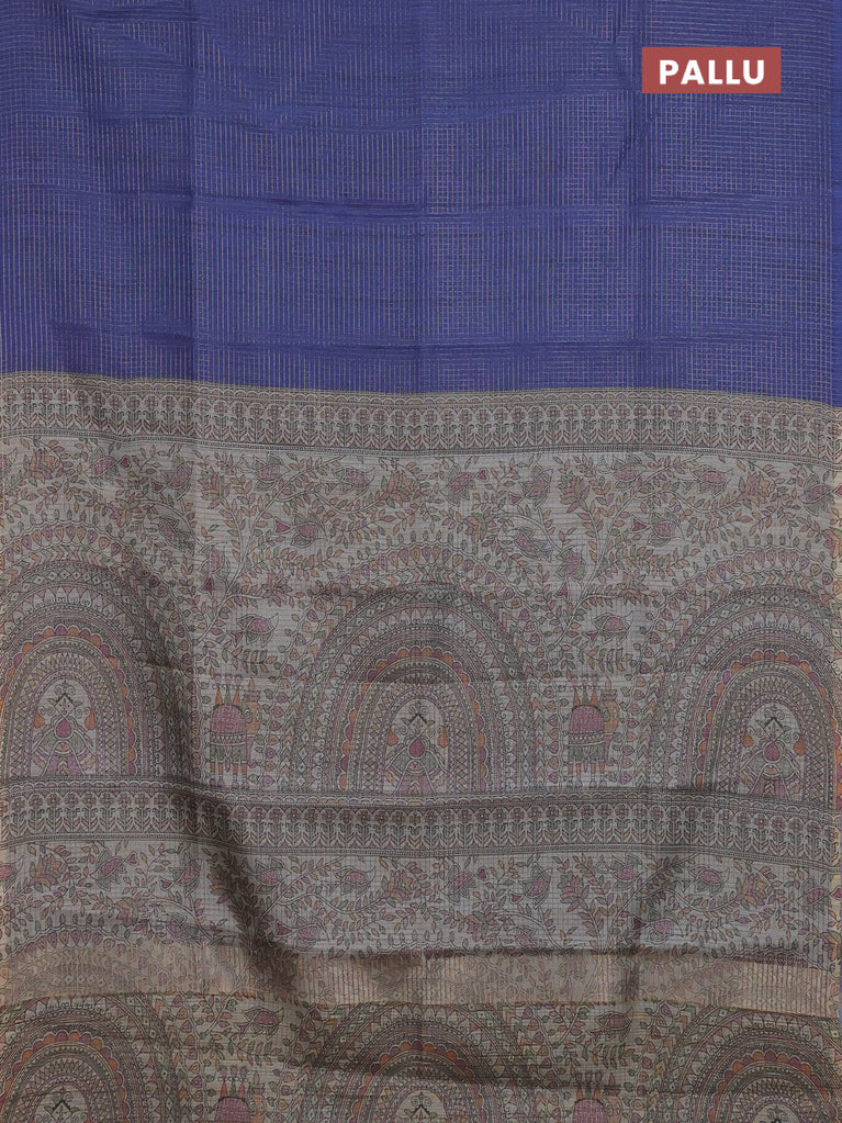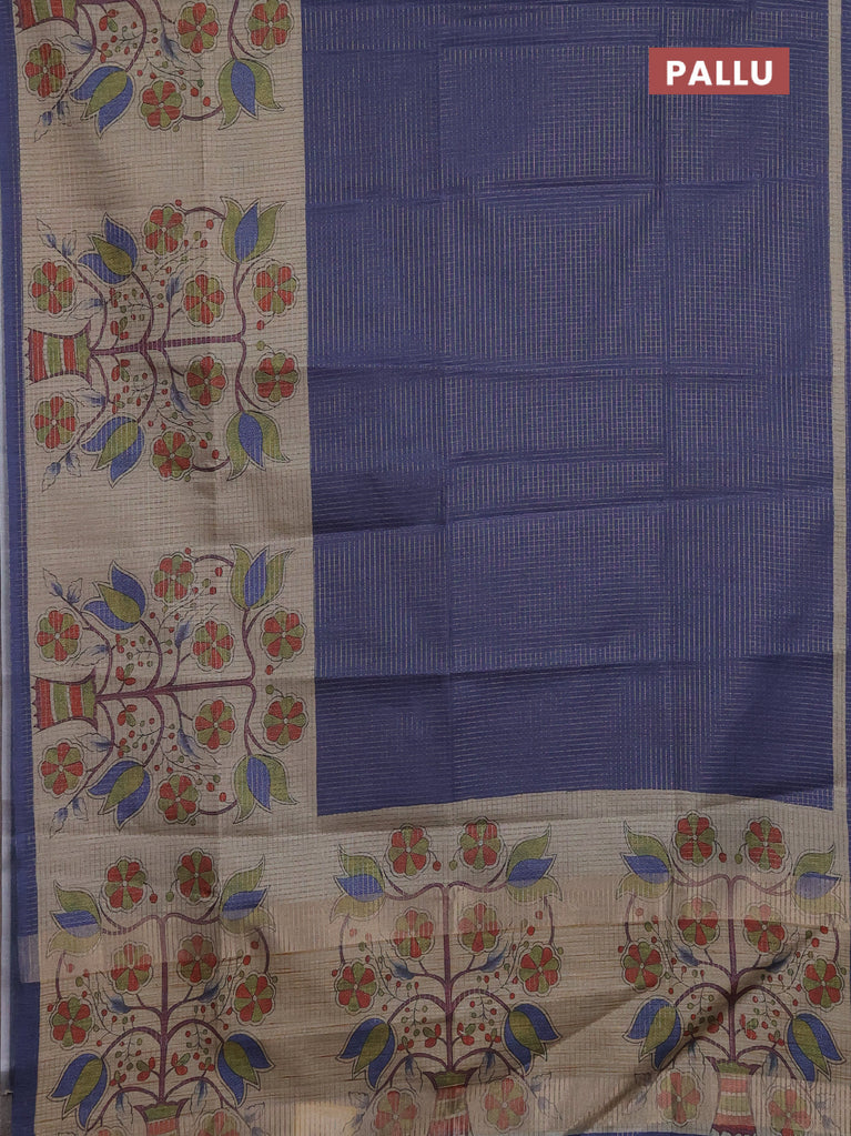 Chappa saree blue and beige with allover small zari checked pattern and madhubani printed pallu