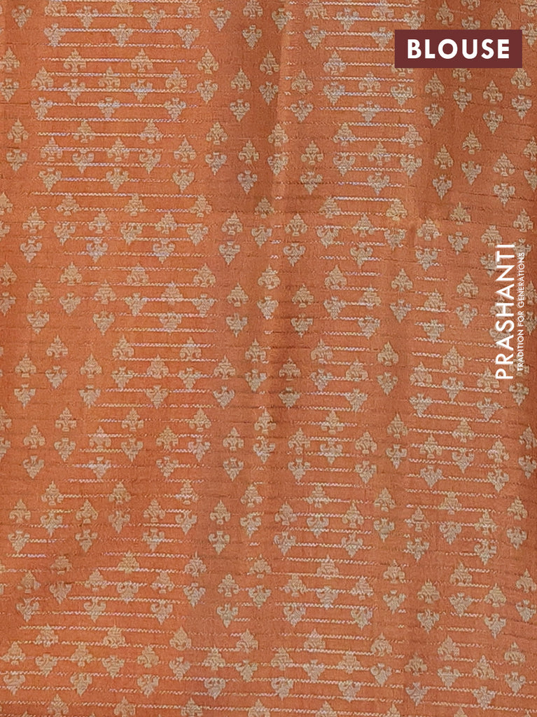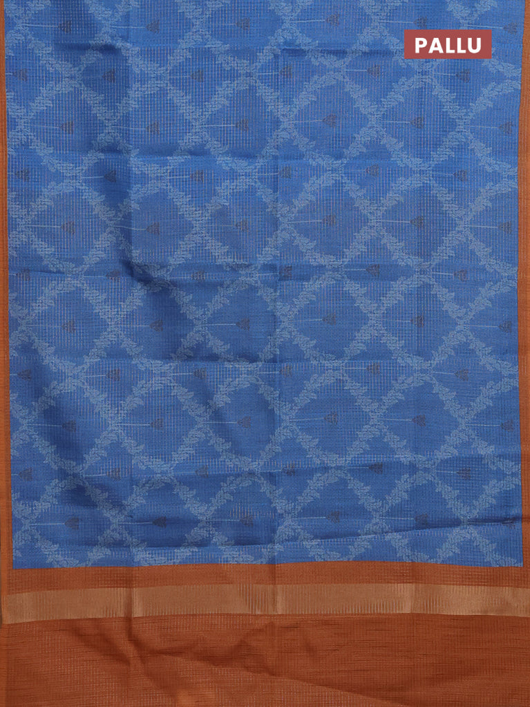 Chappa saree cs blue and orange with allover small zari checked pattern & prints and piping border