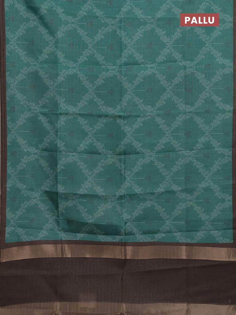 Chappa saree green and brown with allover small zari checked pattern & prints and piping border