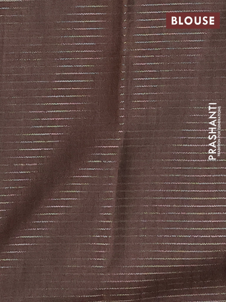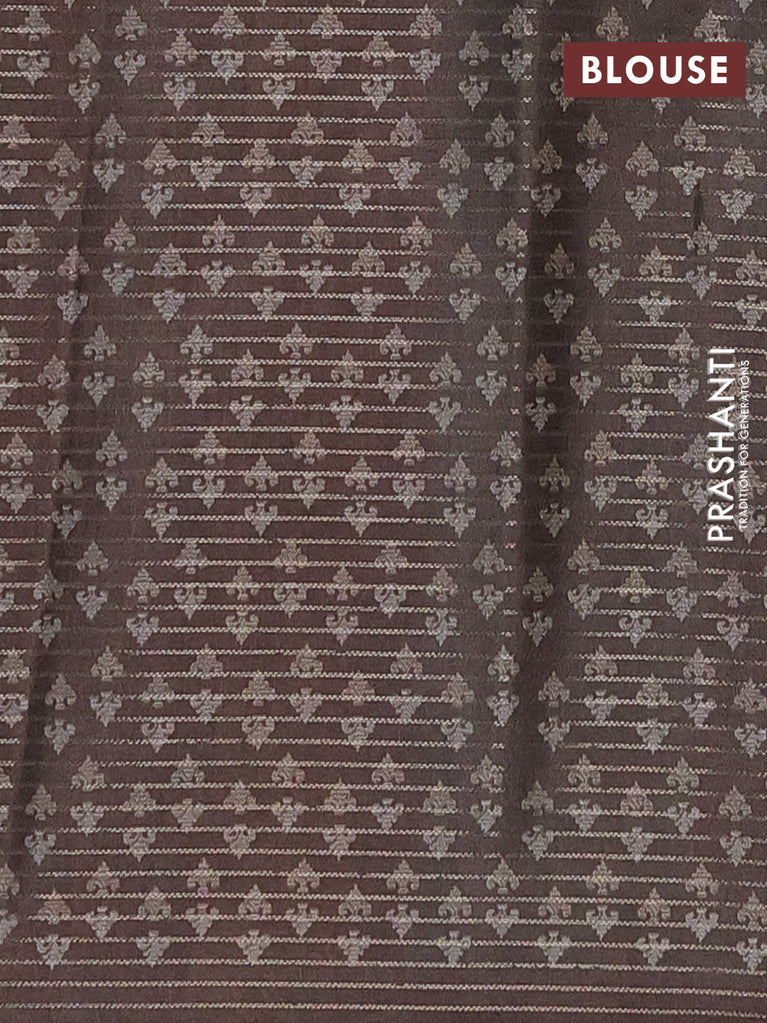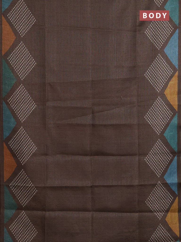 Chappa saree coffee brown and grey with allover small zari checked pattern and printed border