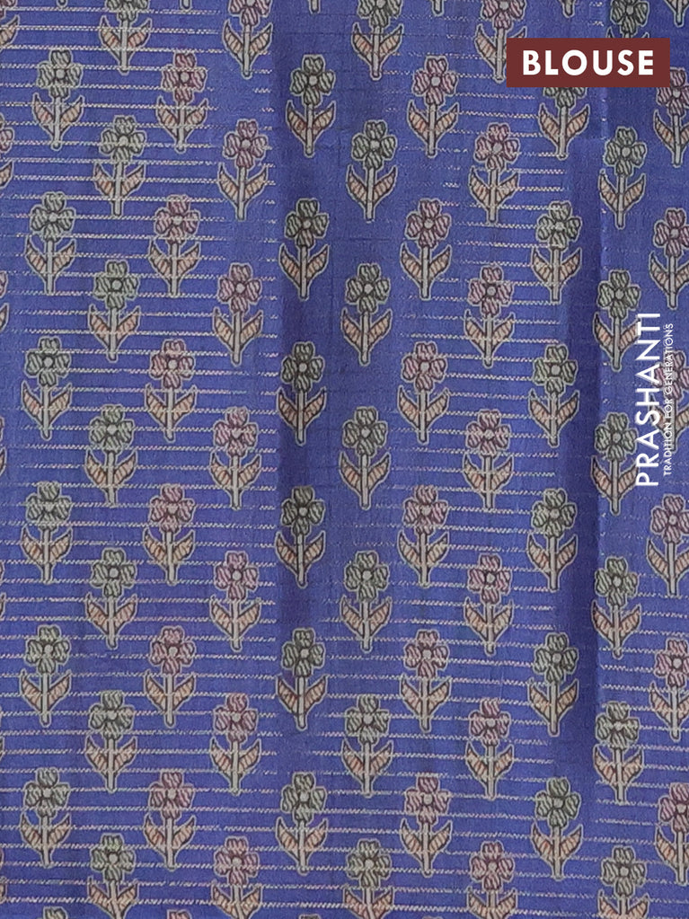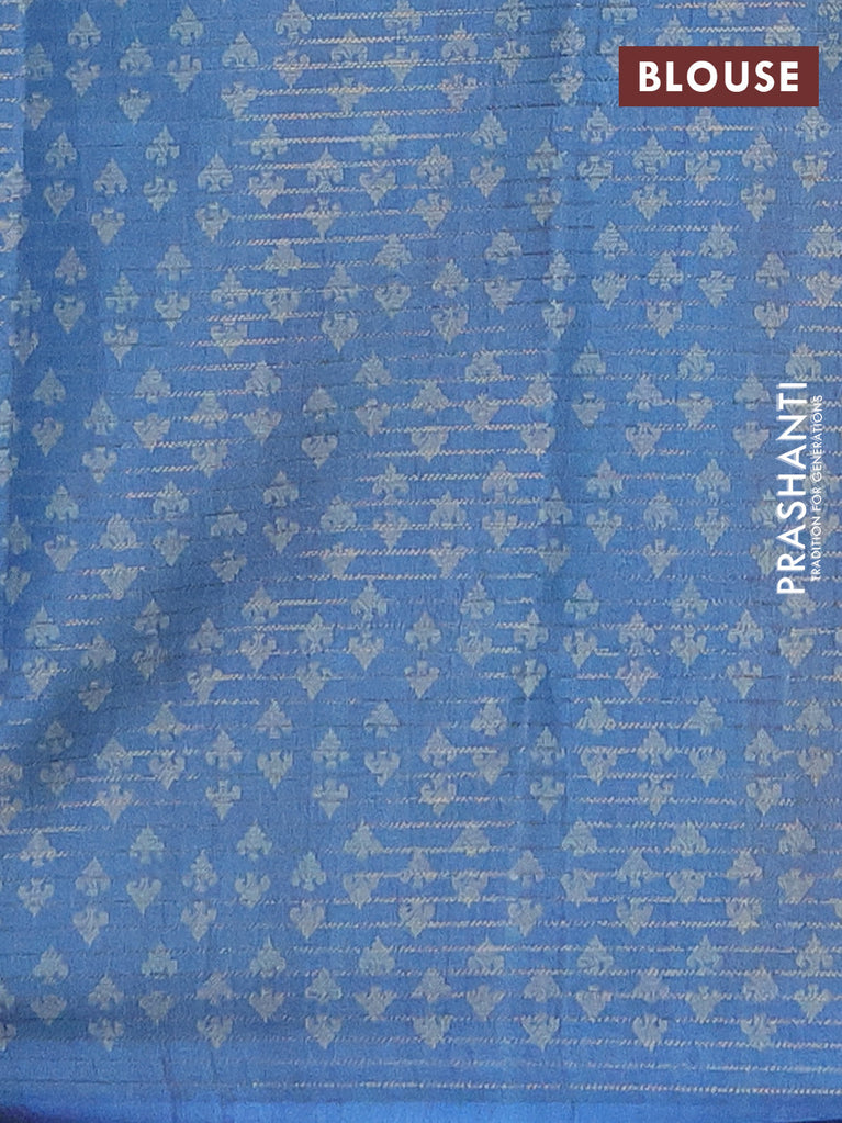 Chappa saree cs blue with allover small zari checked pattern and floral digital printed pallu