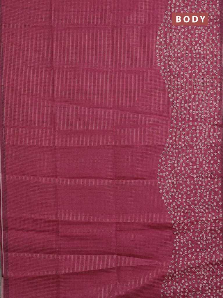 Chappa saree dark magenta pink and beige with allover small zari checked pattern and floral digital printed pallu