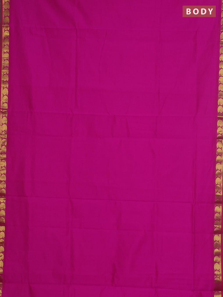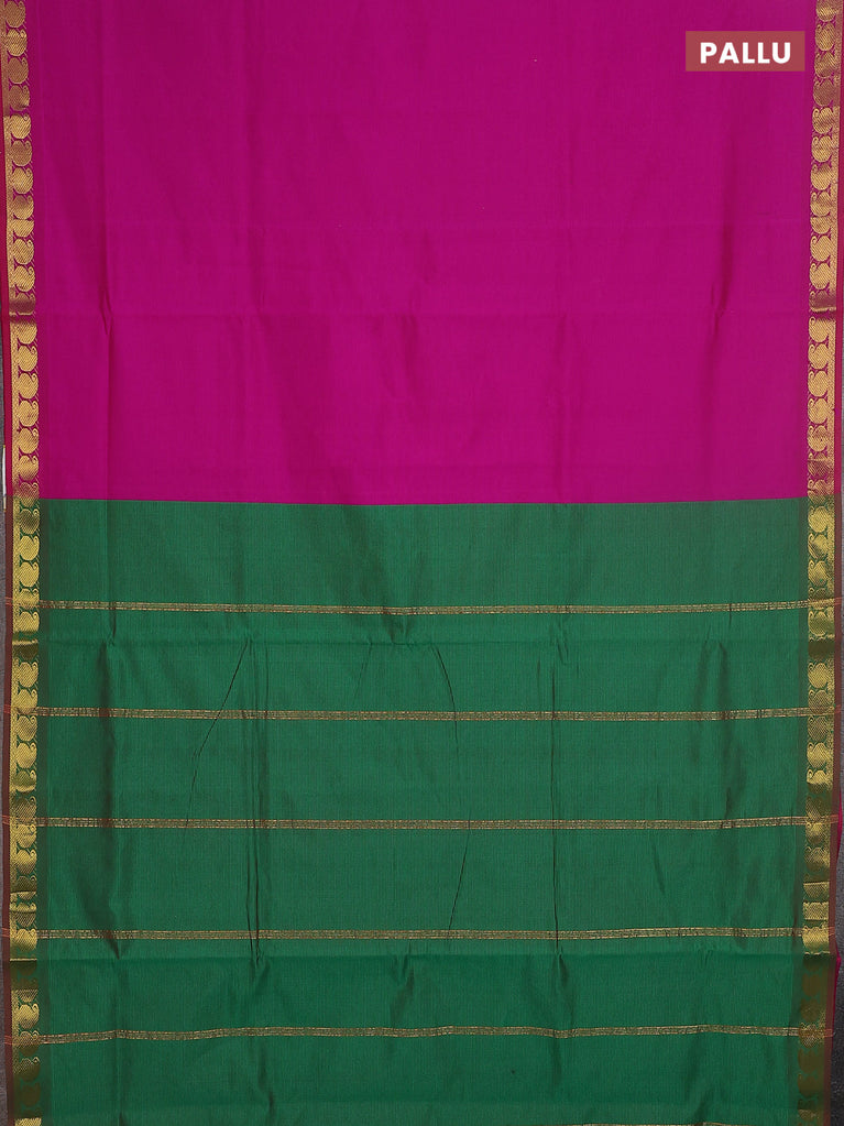 10 yards Poly cotton saree magenta pink and green with plain body and zari woven border