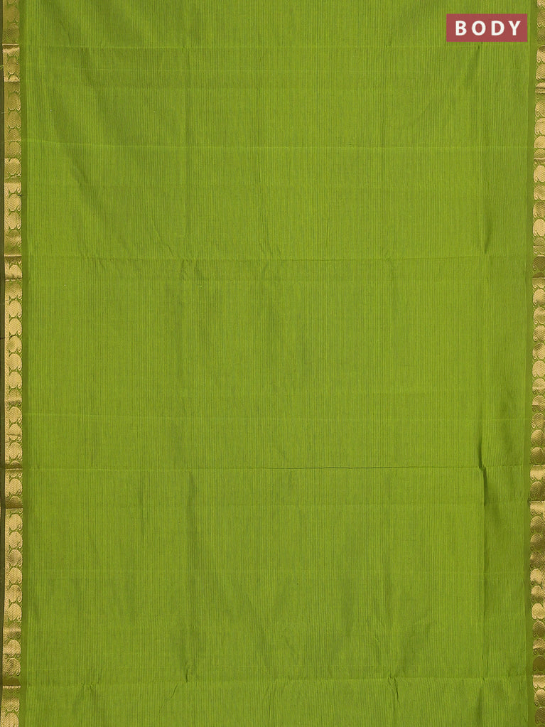 10 yards Poly cotton saree mehendi green and green with plain body and zari woven border