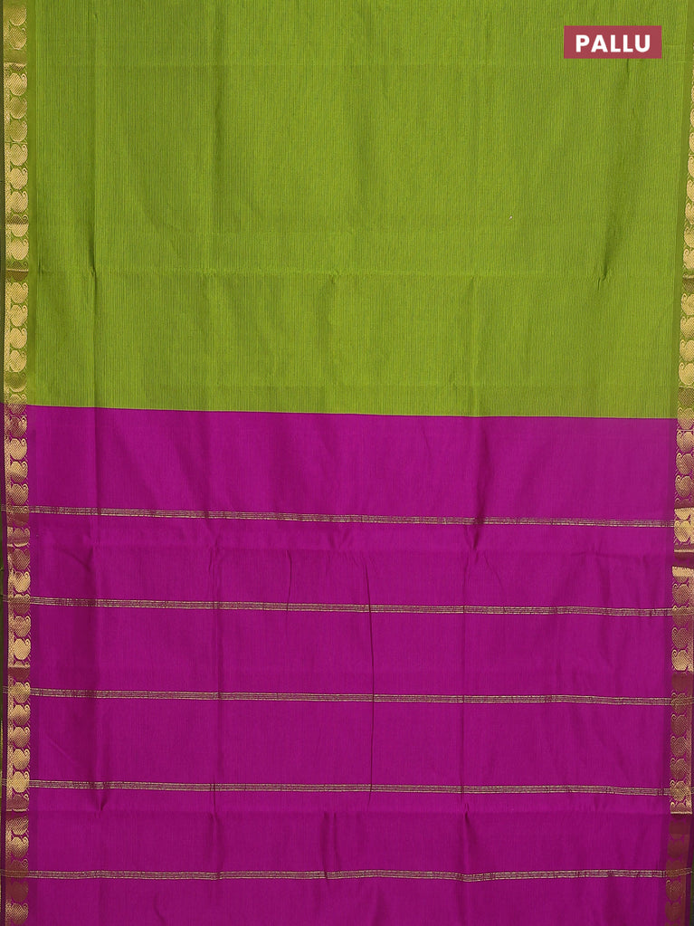 10 yards Poly cotton saree light green and purple with plain body and zari woven border