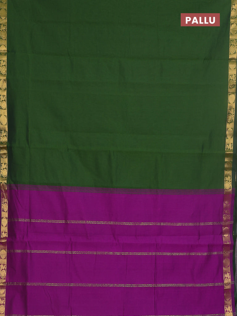 10 yards Poly cotton saree green and purple with plain body and zari woven border