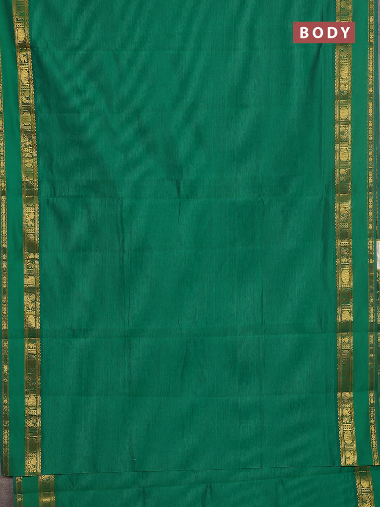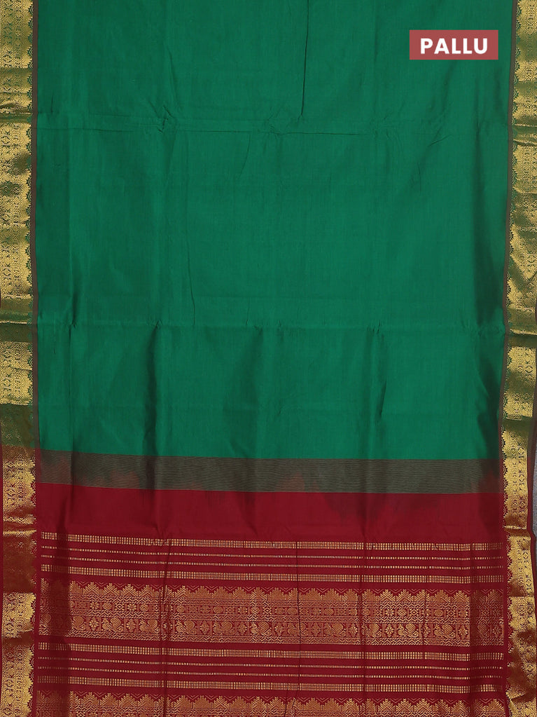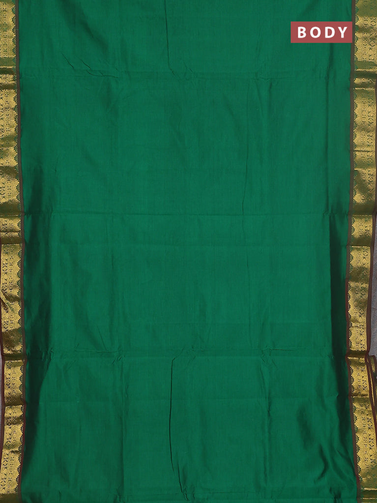 10 yards Poly cotton saree green and maroon with plain body and rettapet zari woven border