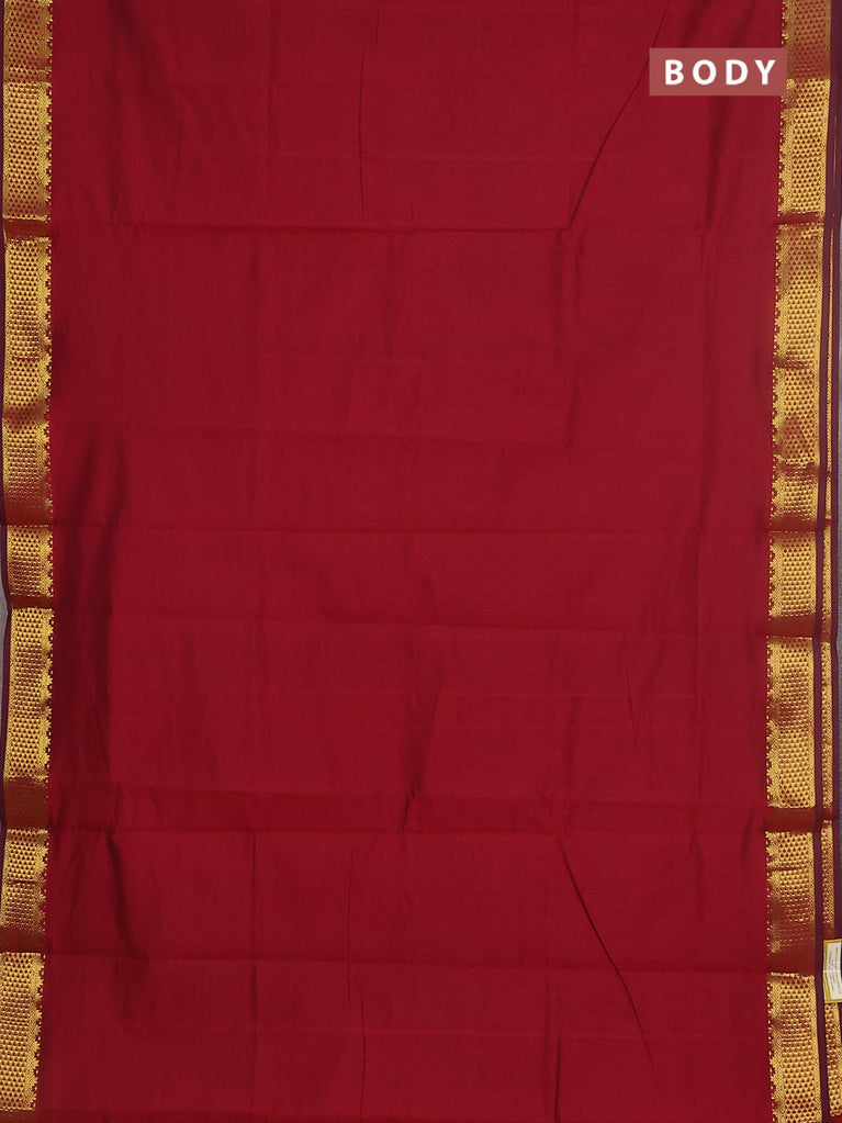 10 yards Poly cotton saree maroon and green with plain body and rettapet zari woven border