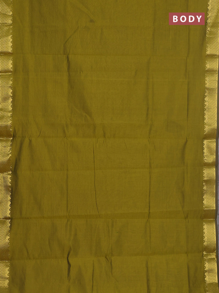 10 yards Poly cotton saree mehendi green and maroon with plain body and zari woven border