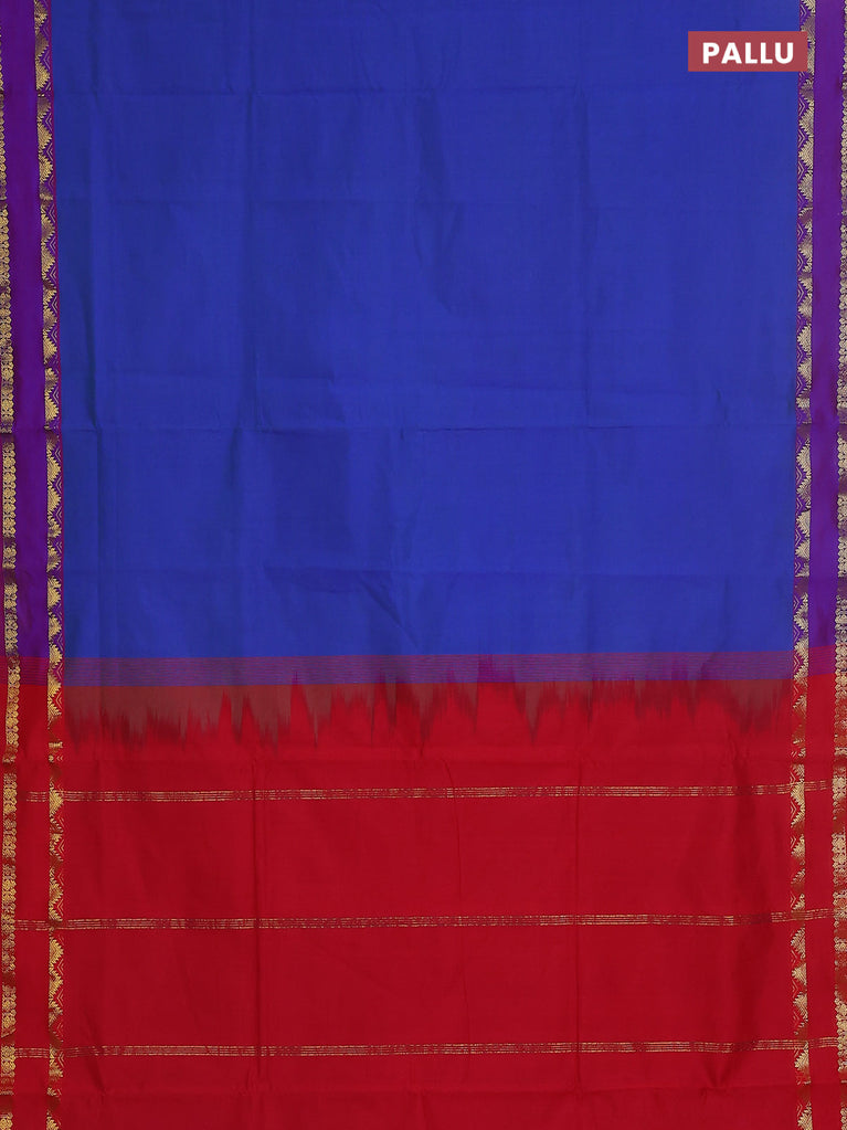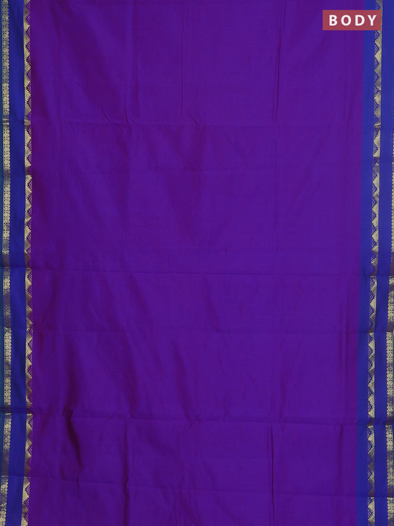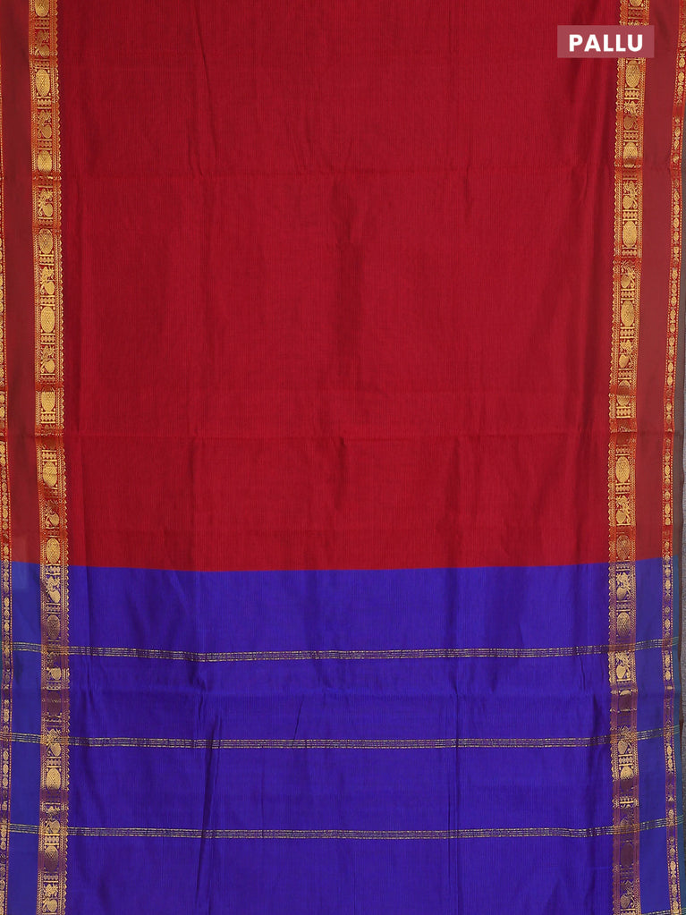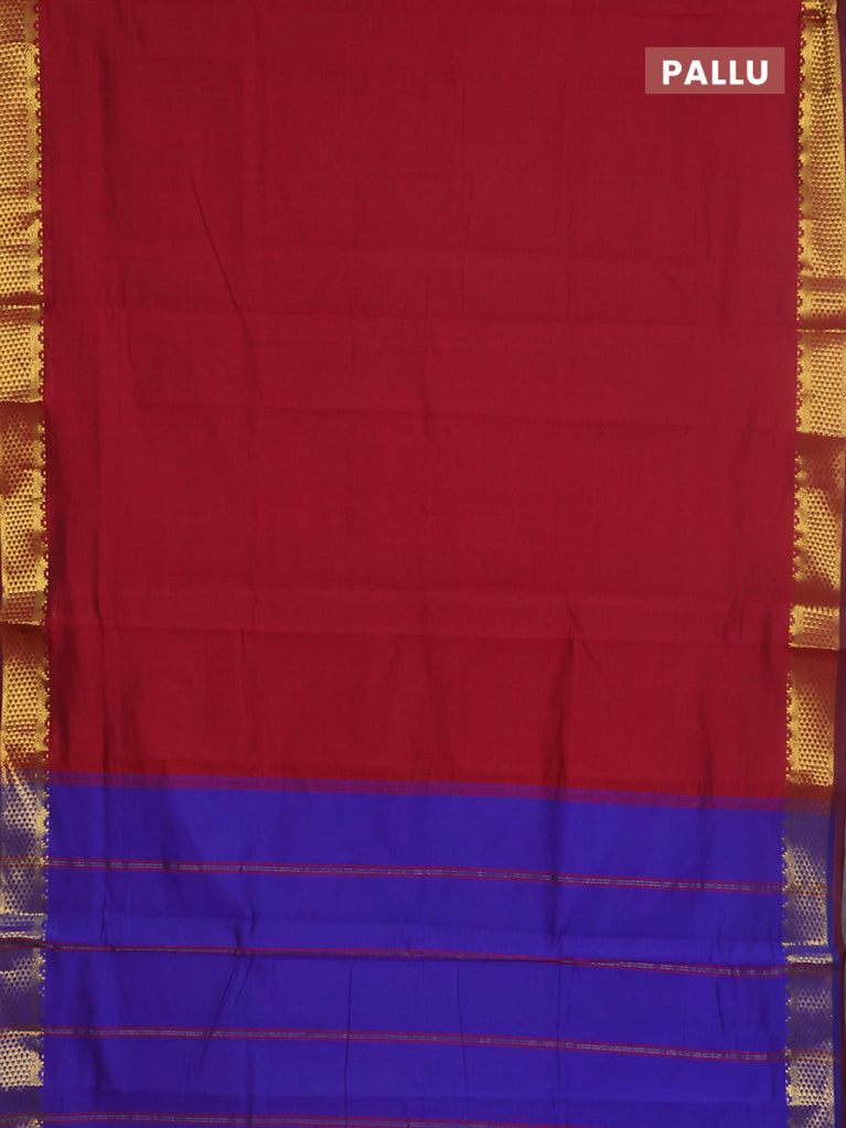10 yards Poly cotton saree maroon and blue with plain body and rettapet zari woven border