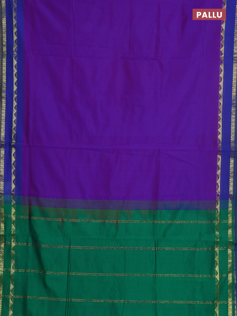 10 yards Poly cotton saree dual shade of blue and green with plain body and rettapet zari woven border