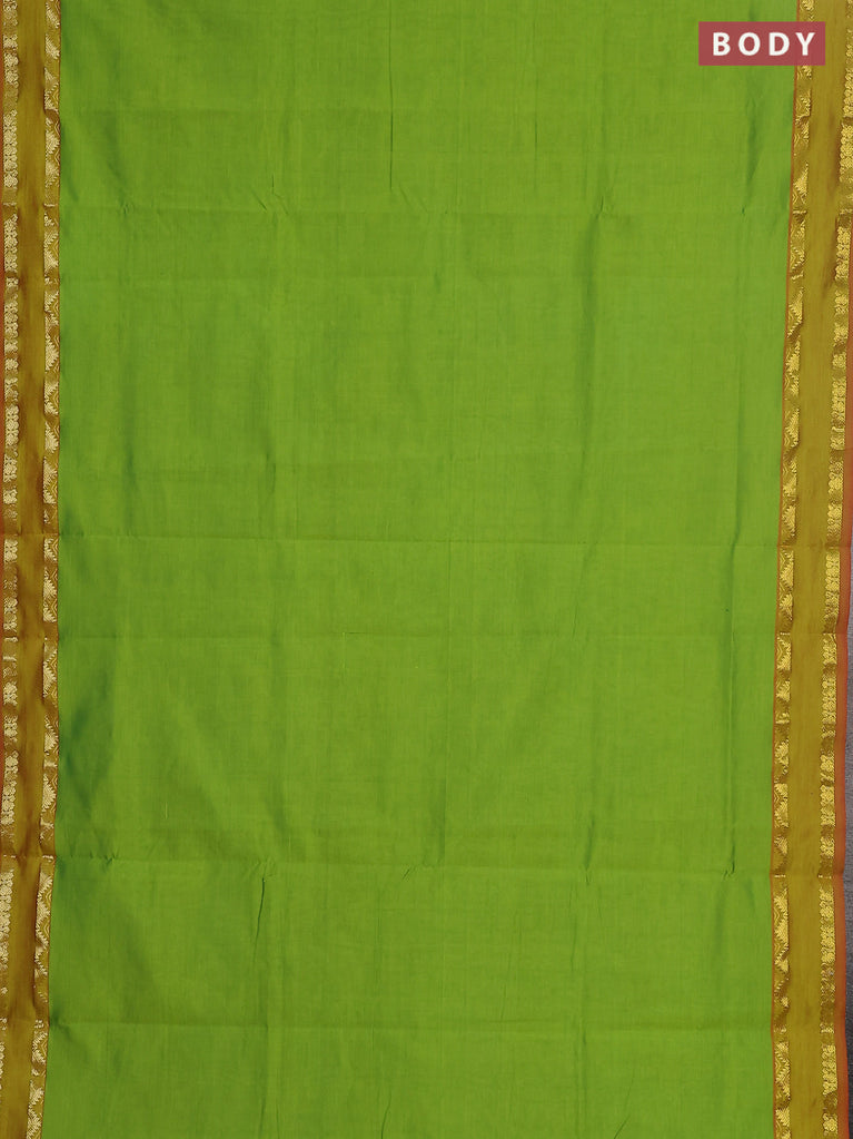 10 yards Poly cotton saree light green and red with plain body and rettapet zari woven border