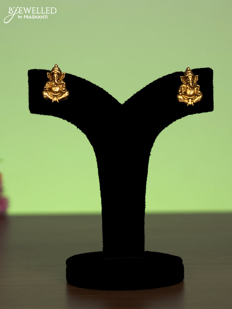 Antique bridal set lakshmi design with jadau cz stones and green beads hanging