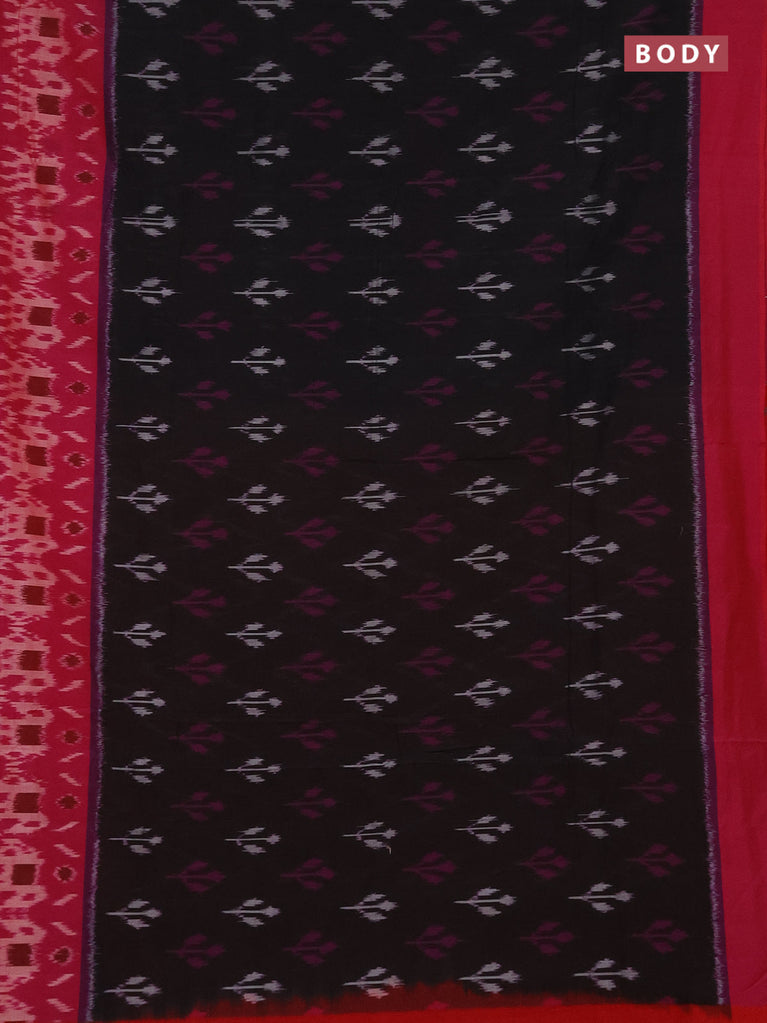 Ikat cotton saree black and pink with allover ikat butta weaves and long ikat border