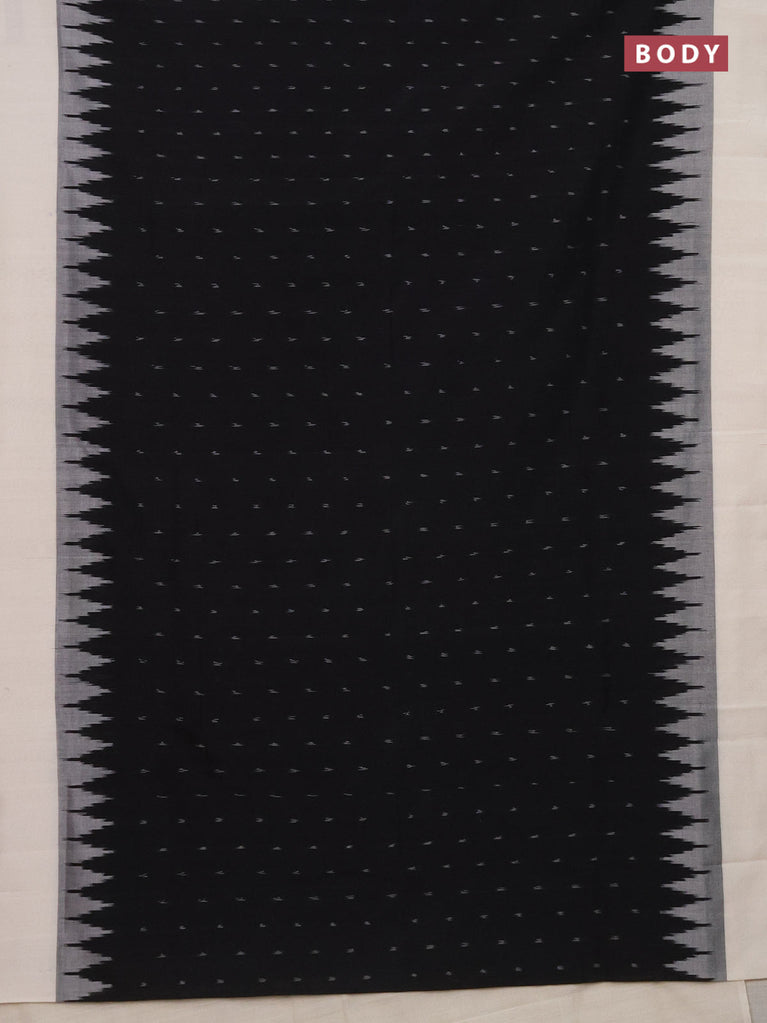 Ikat cotton saree black and off white with allover ikat butta weaves and temple design simple border