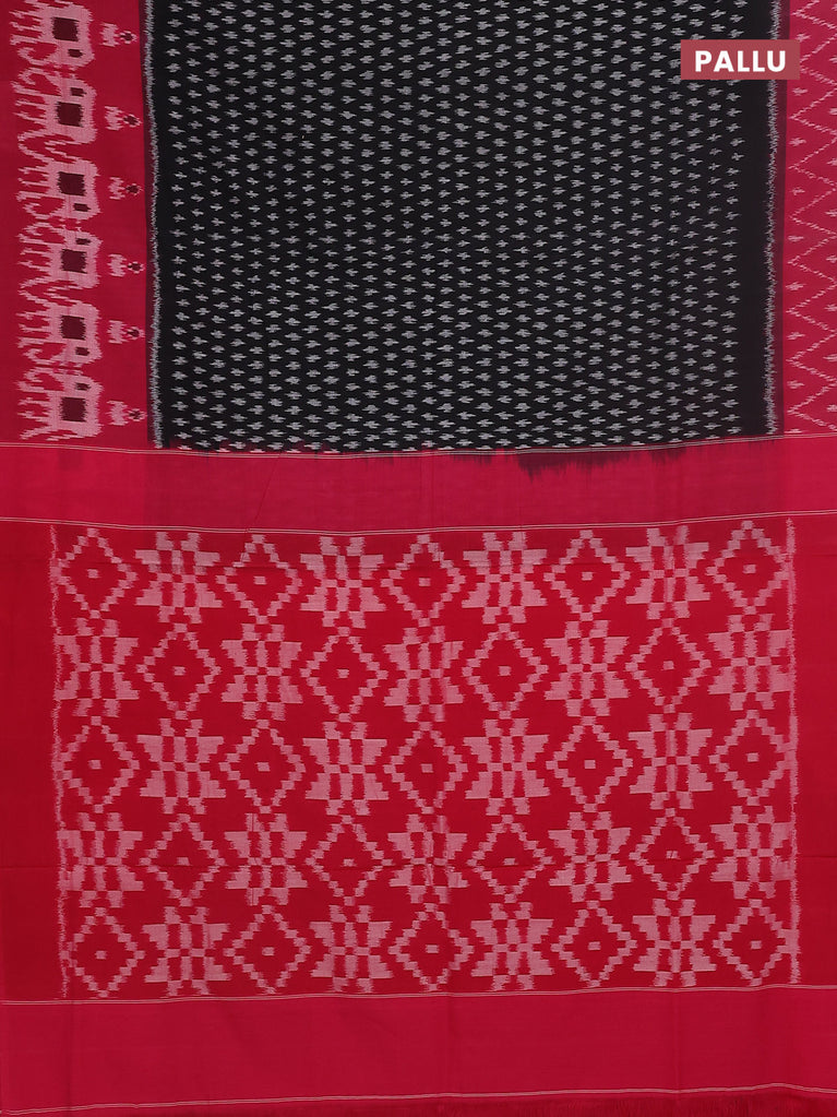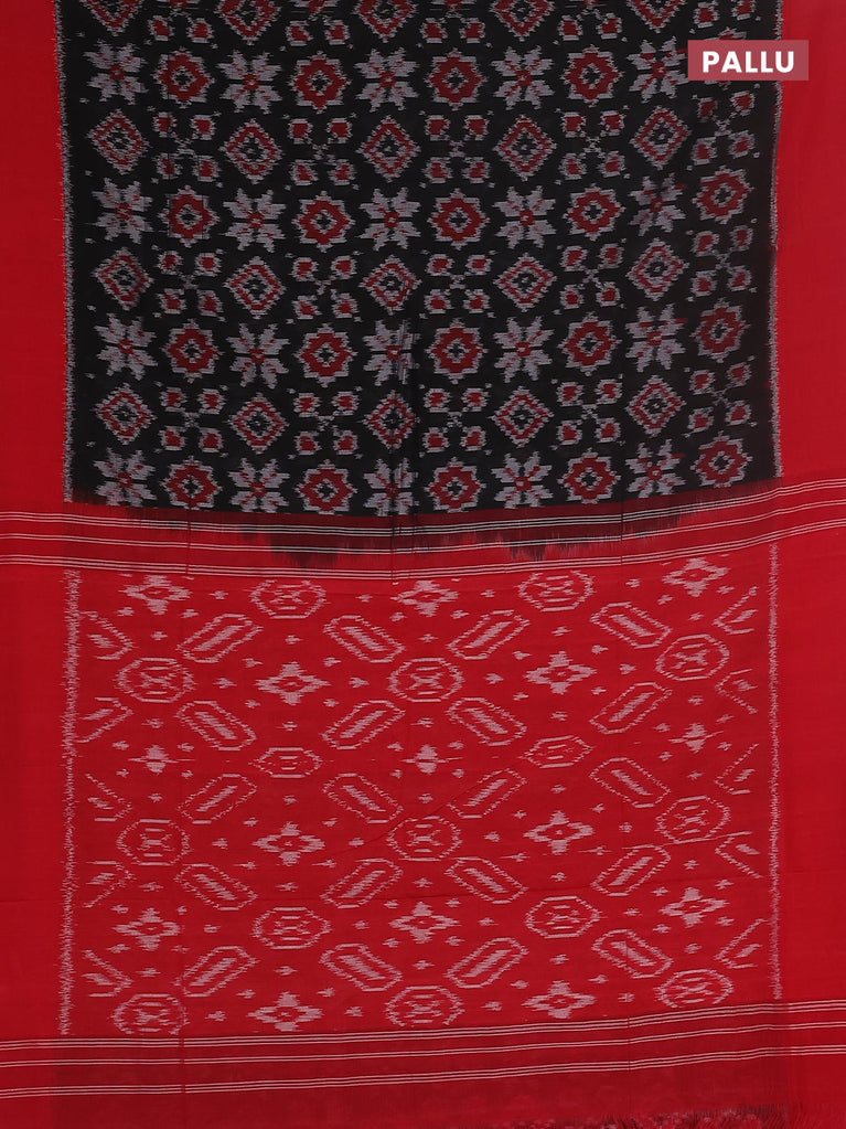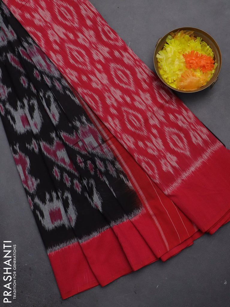 Ikat cotton saree black and red with allover ikat butta weaves and ikat style border
