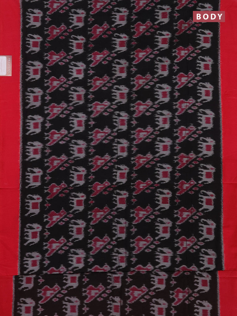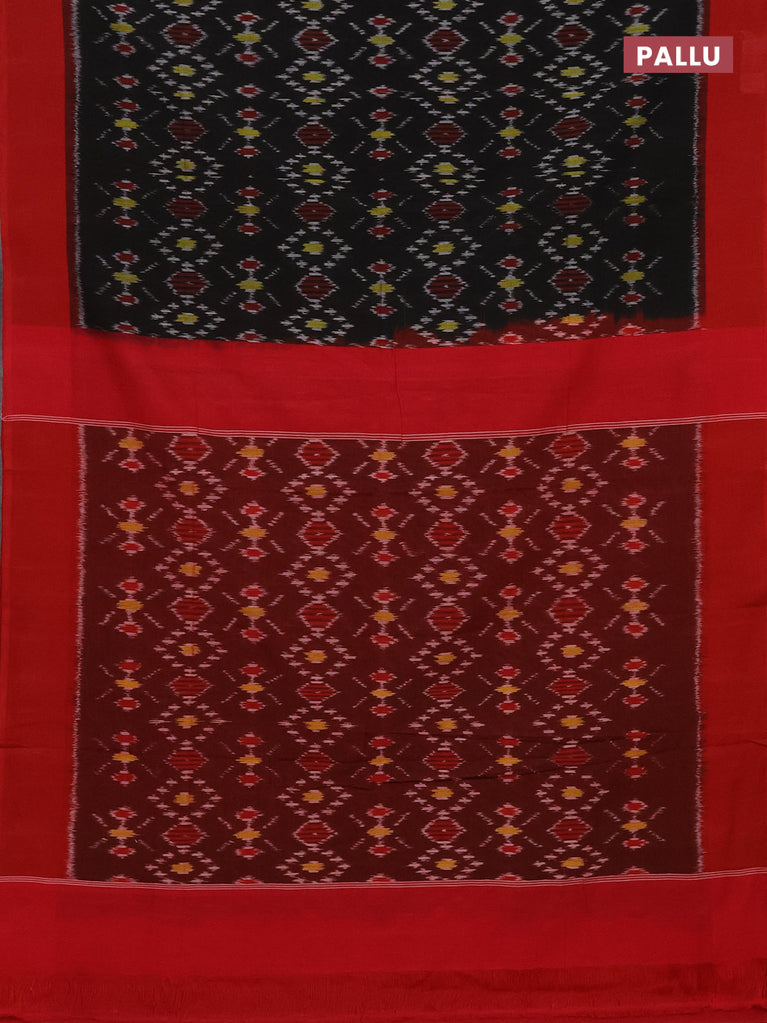 Ikat cotton saree black and red with allover ikat weaves and simple border