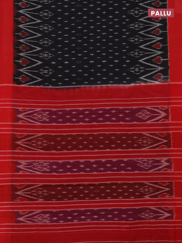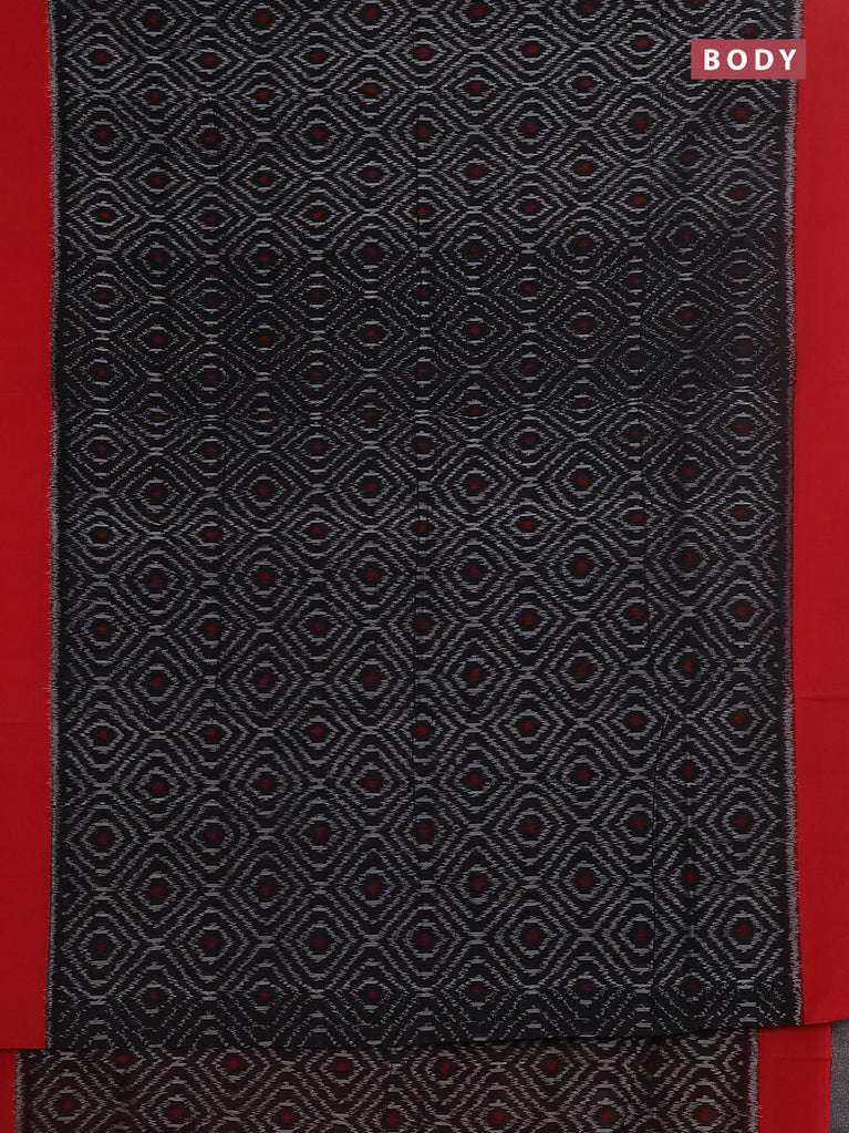 Ikat cotton saree black and red with allover ikat butta weaves and simple border