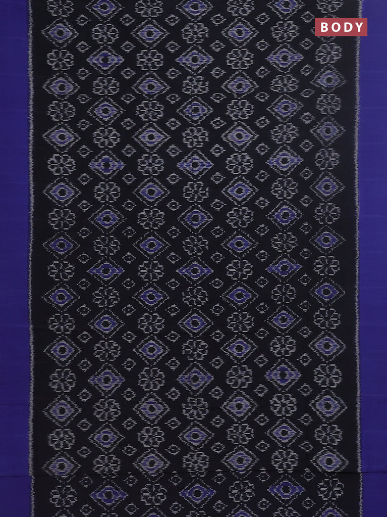 Ikat cotton saree black and blue with allover ikat weaves and simple border