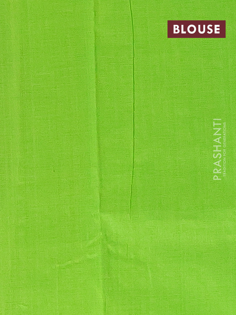 Ikat cotton saree dark blue and light green with allover ikat butta weaves and temple design simple border