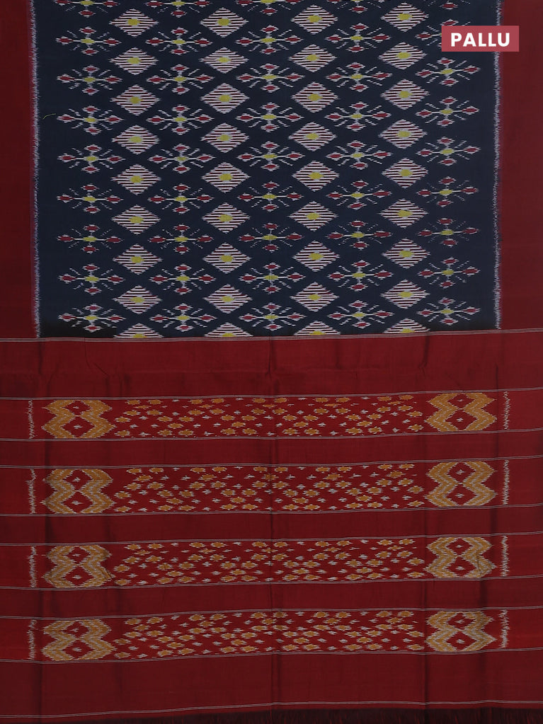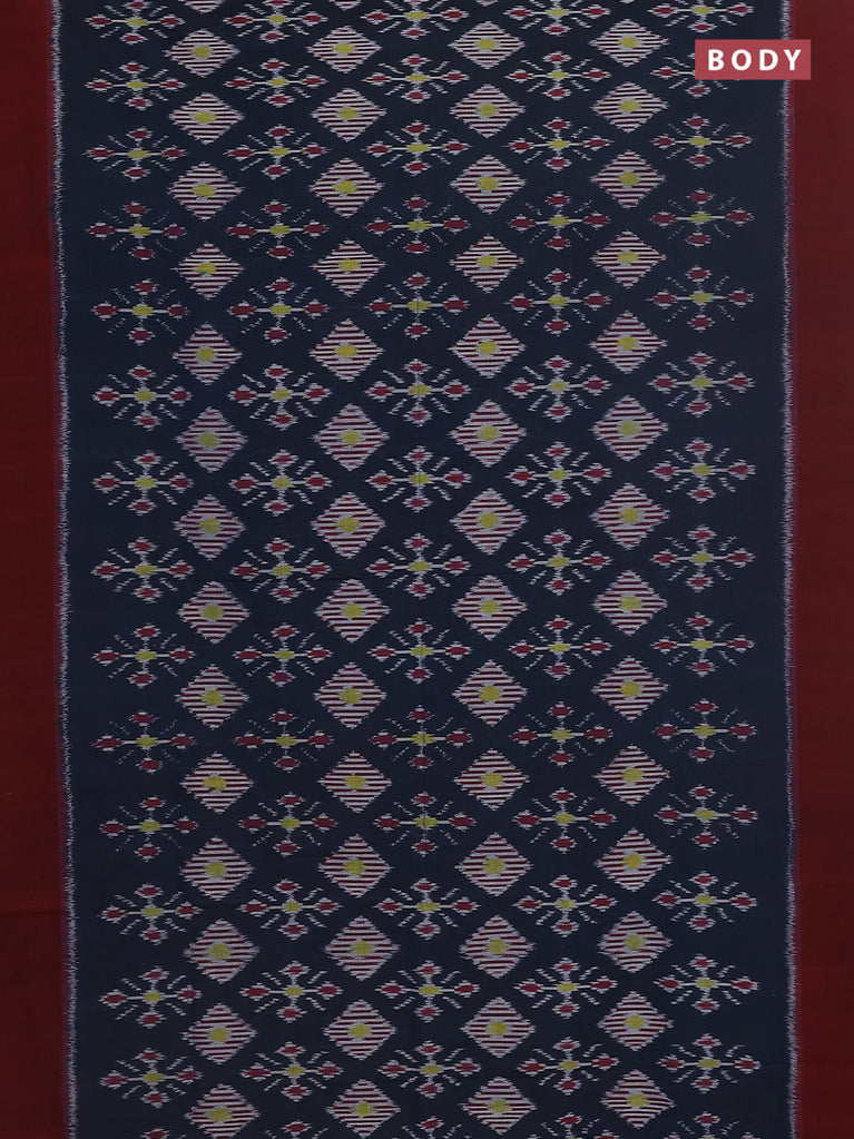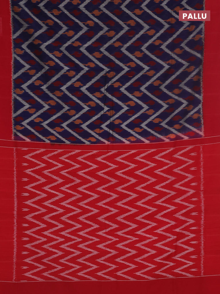 Ikat cotton saree dark blue and red with allover zig zag ikat weaves and simple border