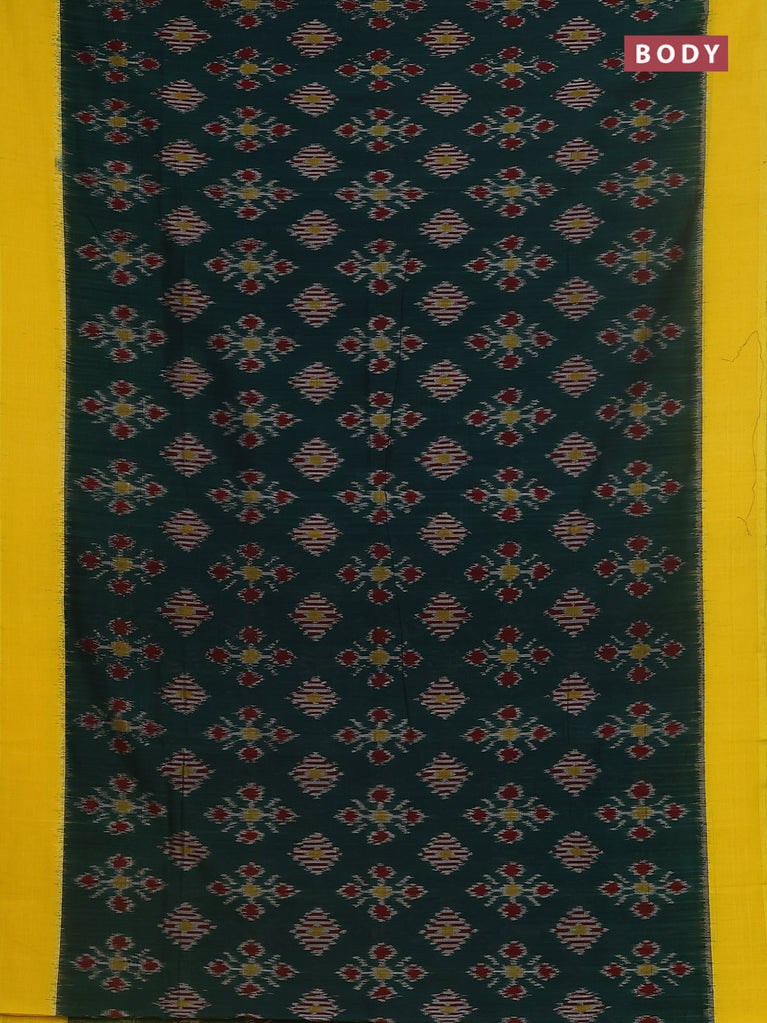 Ikat cotton saree bottle green and yellow with allover ikat butta weaves and simple border