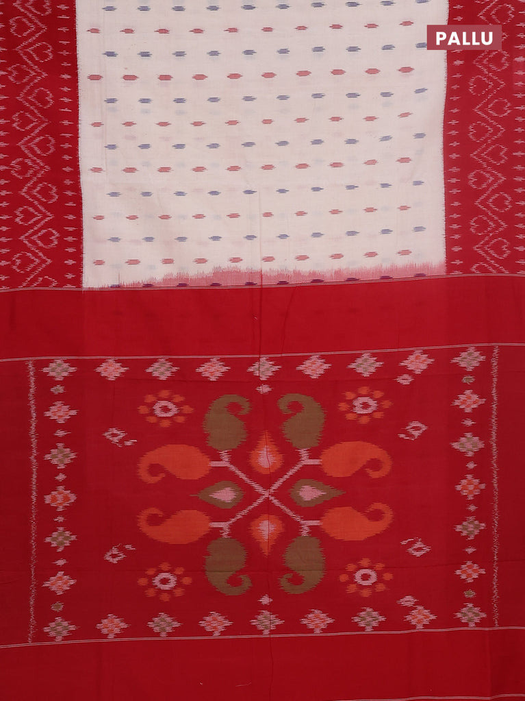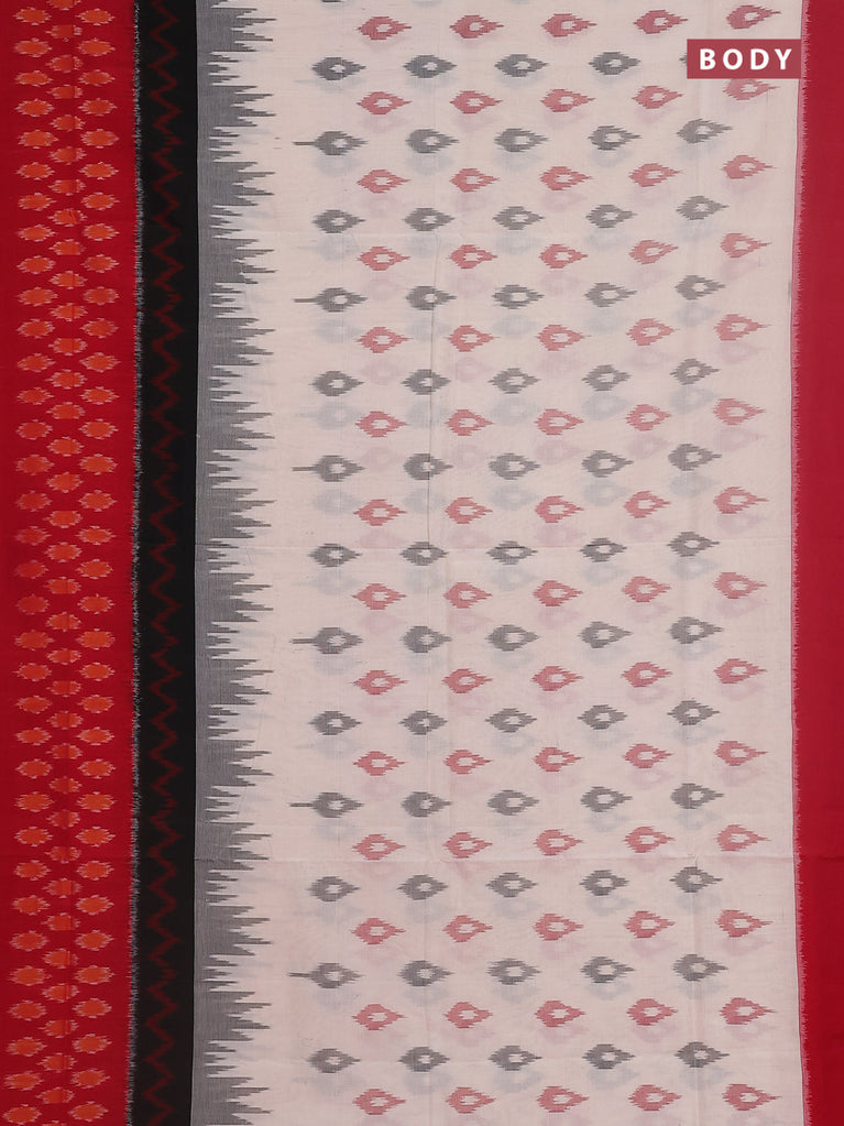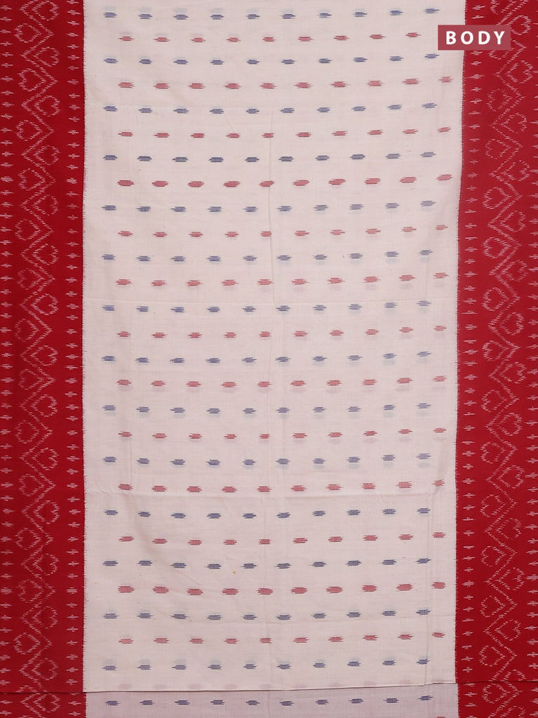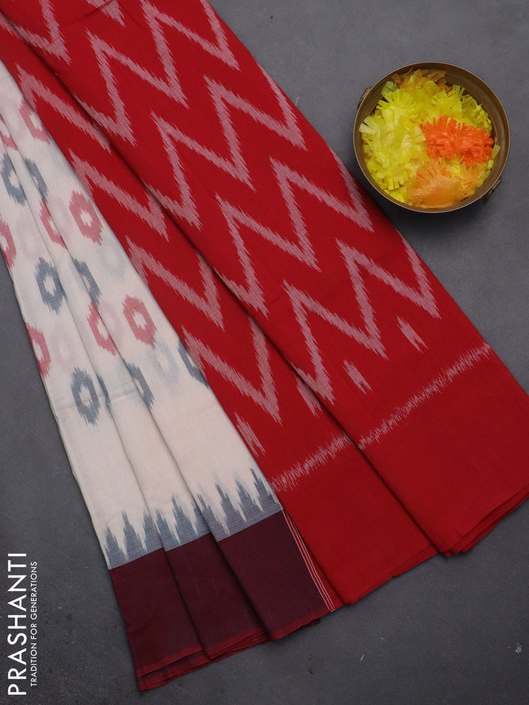 Ikat cotton saree cream and red with allover ikat butta weaves and long ikat style border