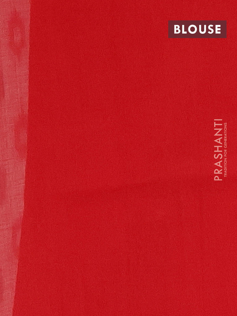 Ikat cotton saree dak blue and red with allover ikat butta weaves and long ikat style border