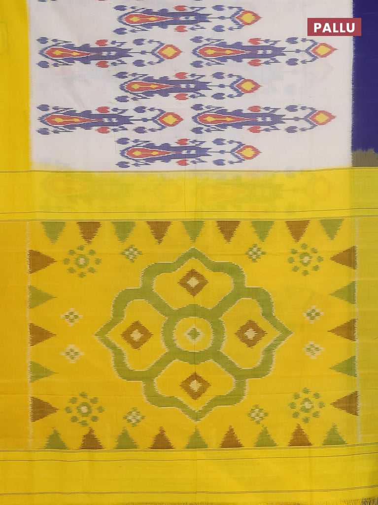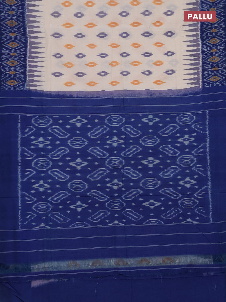 Ikat cotton saree cream and blue with allover ikat butta weaves and temple design ikat style border